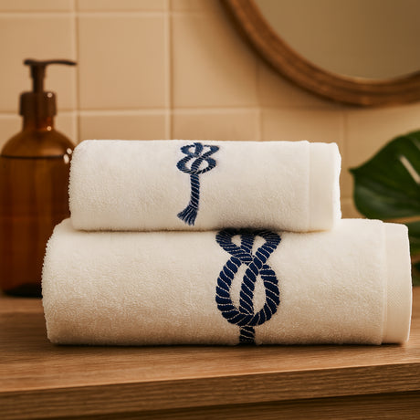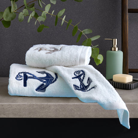 Coppia di Asciugamani in Spugna in Cotone con Ricamo - Ancora