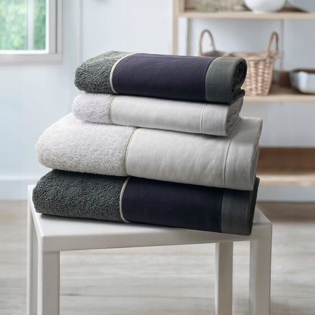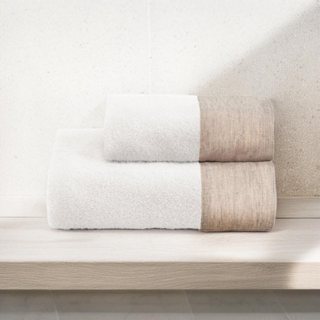 Coppia di Asciugamani in Spugna di Cotone con Balza in Lino - Boston