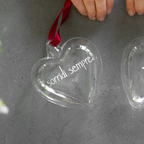 Cuore Decorativo in Vetro Borosilicato Serigrafato - Sorridi Sempre