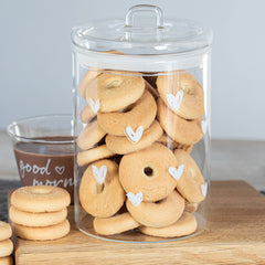 | Barattolo in Vetro Borosilicato Serigrafato - Per una buona colazione | Barattolo in Vetro Borosilicato Serigrafato - Sale Quanto Basta | Barattolo in Vetro Borosilicato Serigrafato - Cuori |