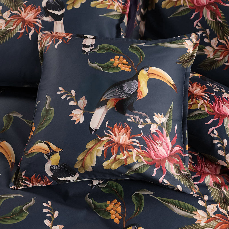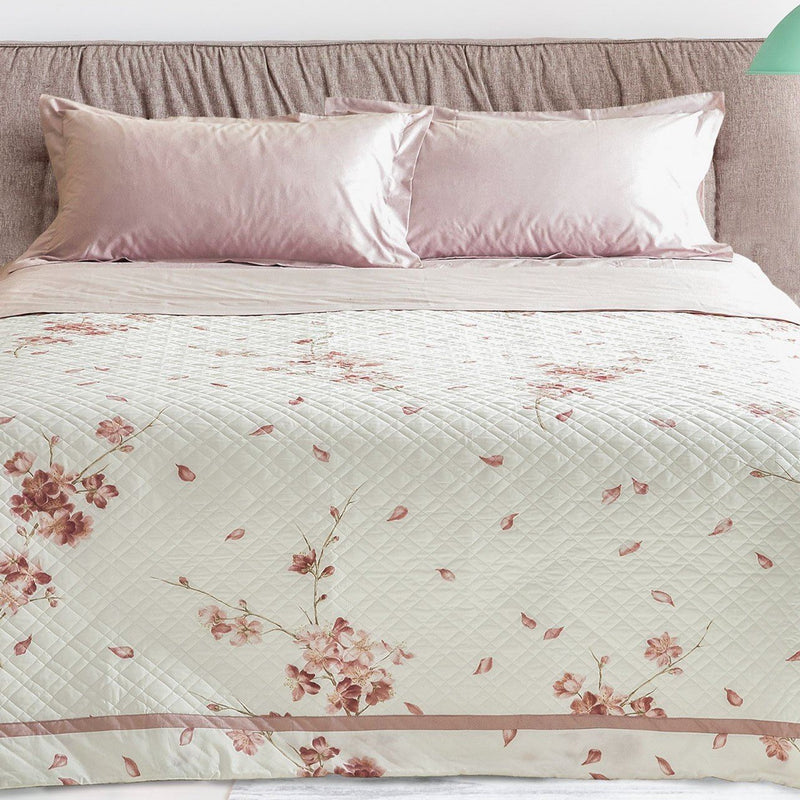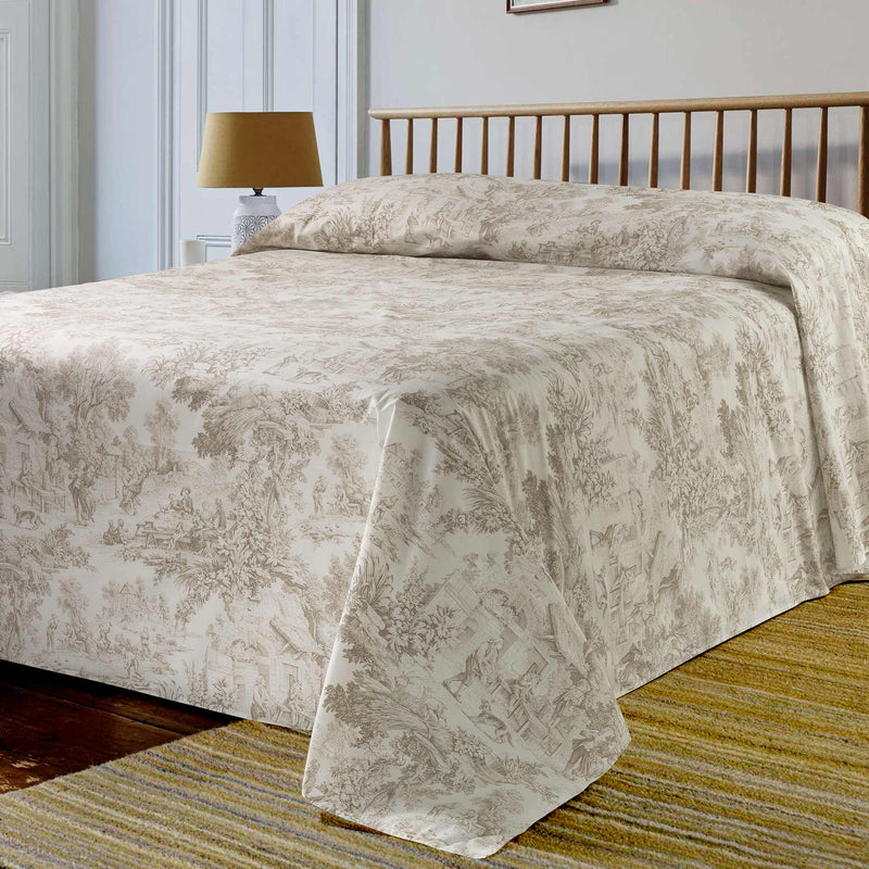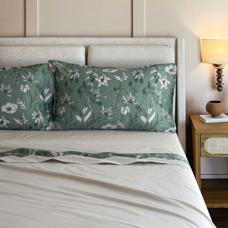 | Set 2 Coppie in Spugna di Cotone con Balza in Percalle - Ninfa | Telo Copritutto in Percalle di Cotone - Jouy | Cuscino Arredo in Percalle di Cotone Stampa Floreale - Paraguay |
