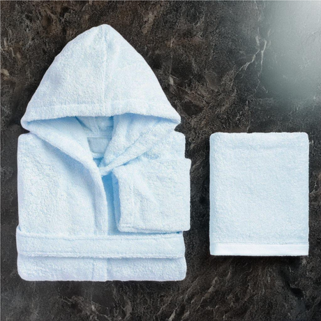 Set Accappatoio per Bambino e Asciugamano in Spugna di Cotone - Perla