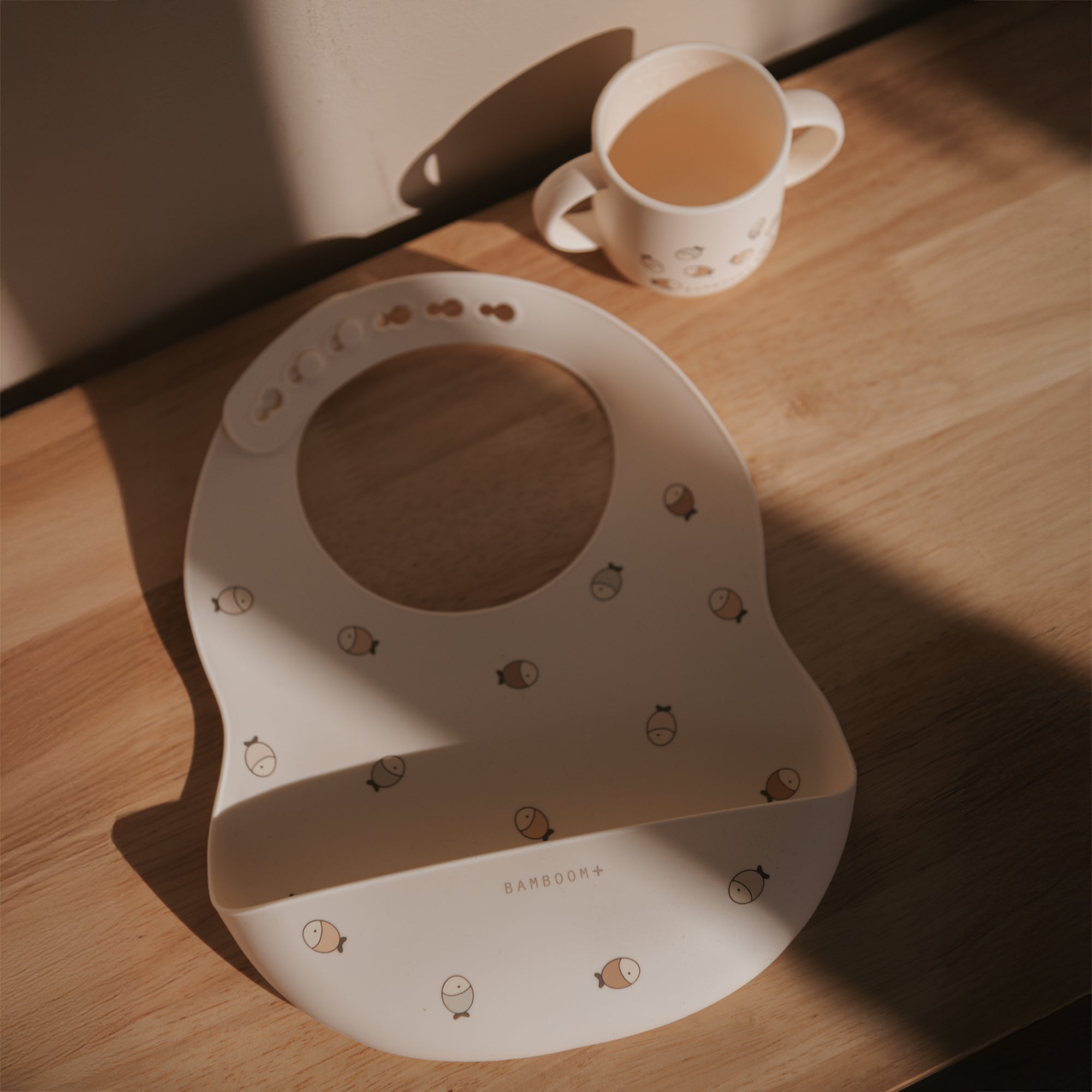 Il Set Pappa Fishes è studiato per rendere i primi pasti del bambino pratici, sicuri e piacevoli. Realizzato in 100% silicone LFGB, resistente e facile da pulire, include un bavaglino con tasca raccogli-pappa, una ciotola con ventosa, un cucchiaino coordinato e un bicchierino con manici e beccuccio, pensati per accompagnare i più piccoli nella scoperta dell’autonomia a tavola.