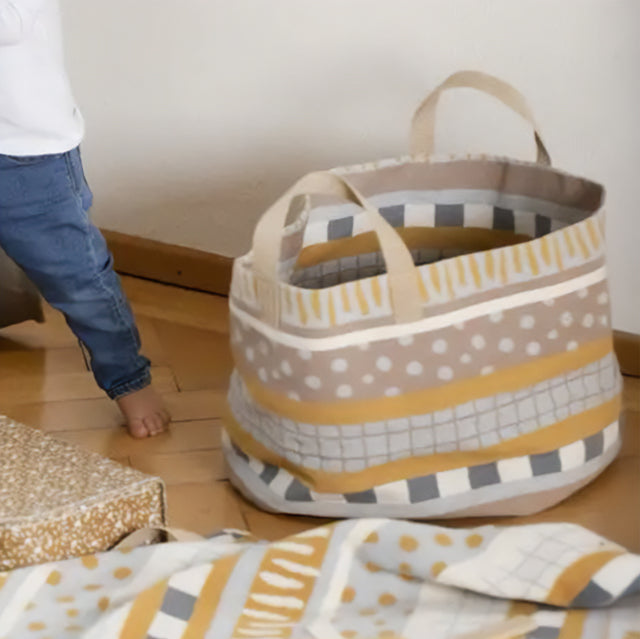 Il Cesto Goliath si aggiunge con orgoglio alla nostra linea di prodotti per la cameretta, realizzato in 85% in cotone riciclato sostenibile. I design dei cesti sono allegri e colorati, perfetti per la camera dei bambini e utilissimi per riporre giocattoli e coperte.