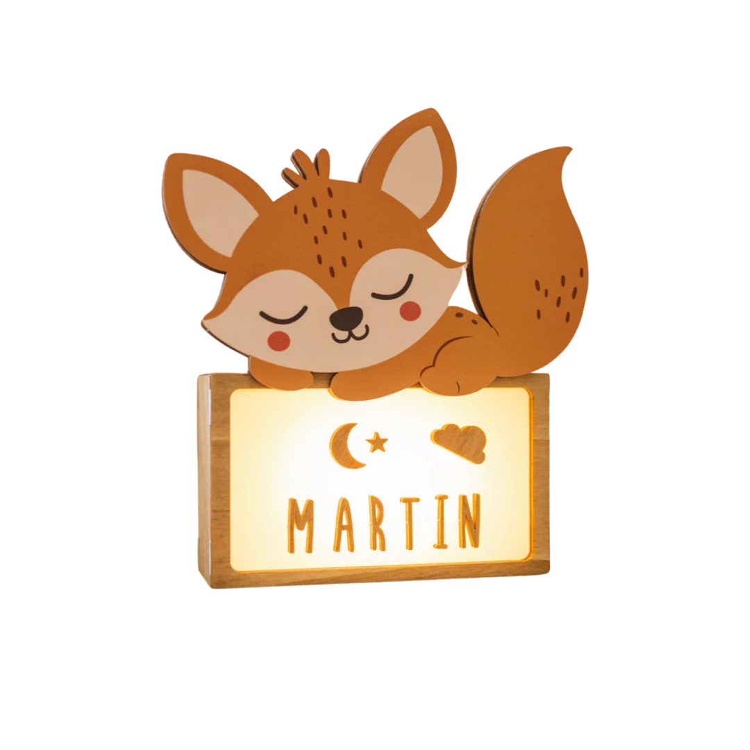 La Lampada da Tavolo Volpe è una dolce luce notturna a forma di volpe, pensata per illuminare la cameretta con una luce calda e rassicurante.