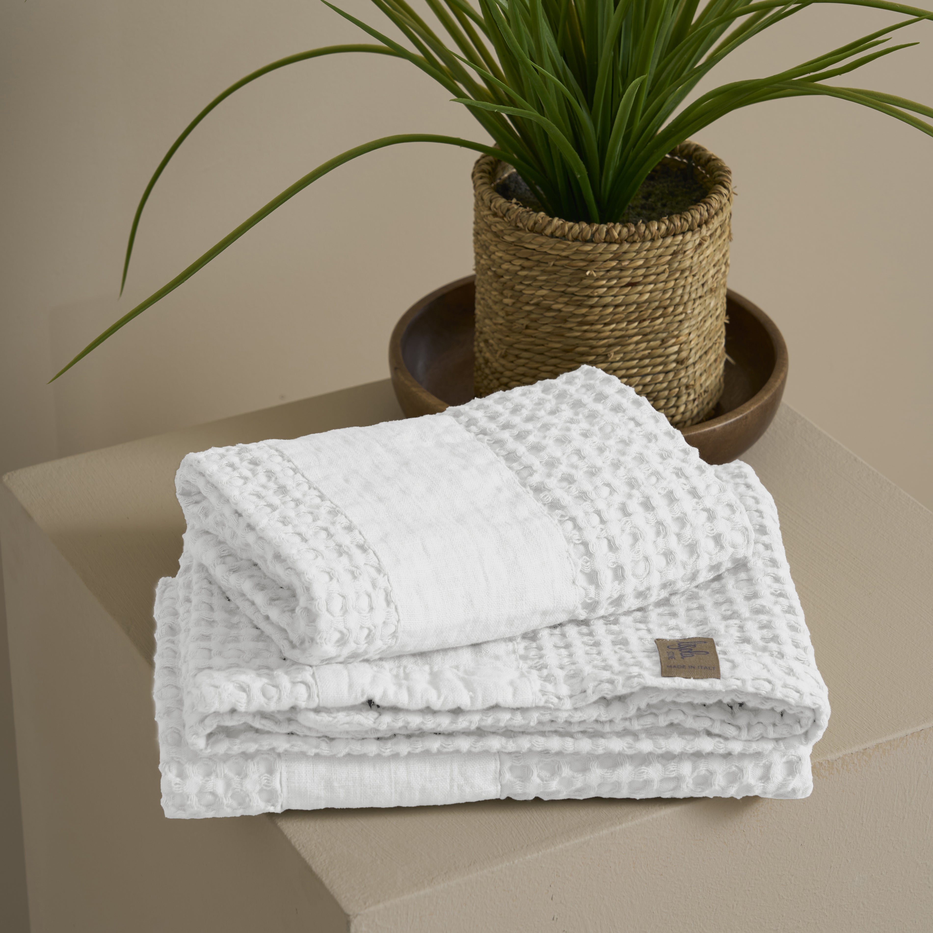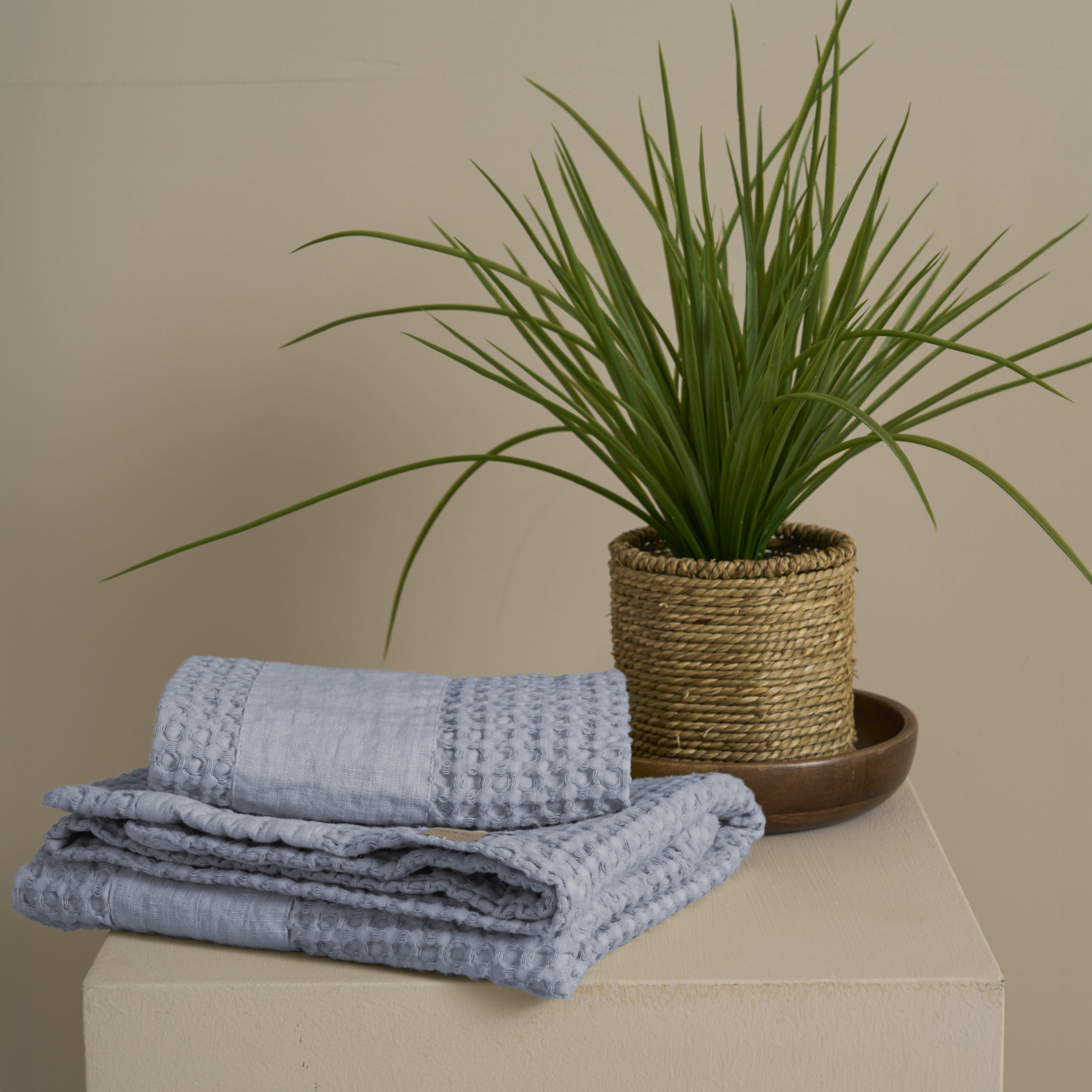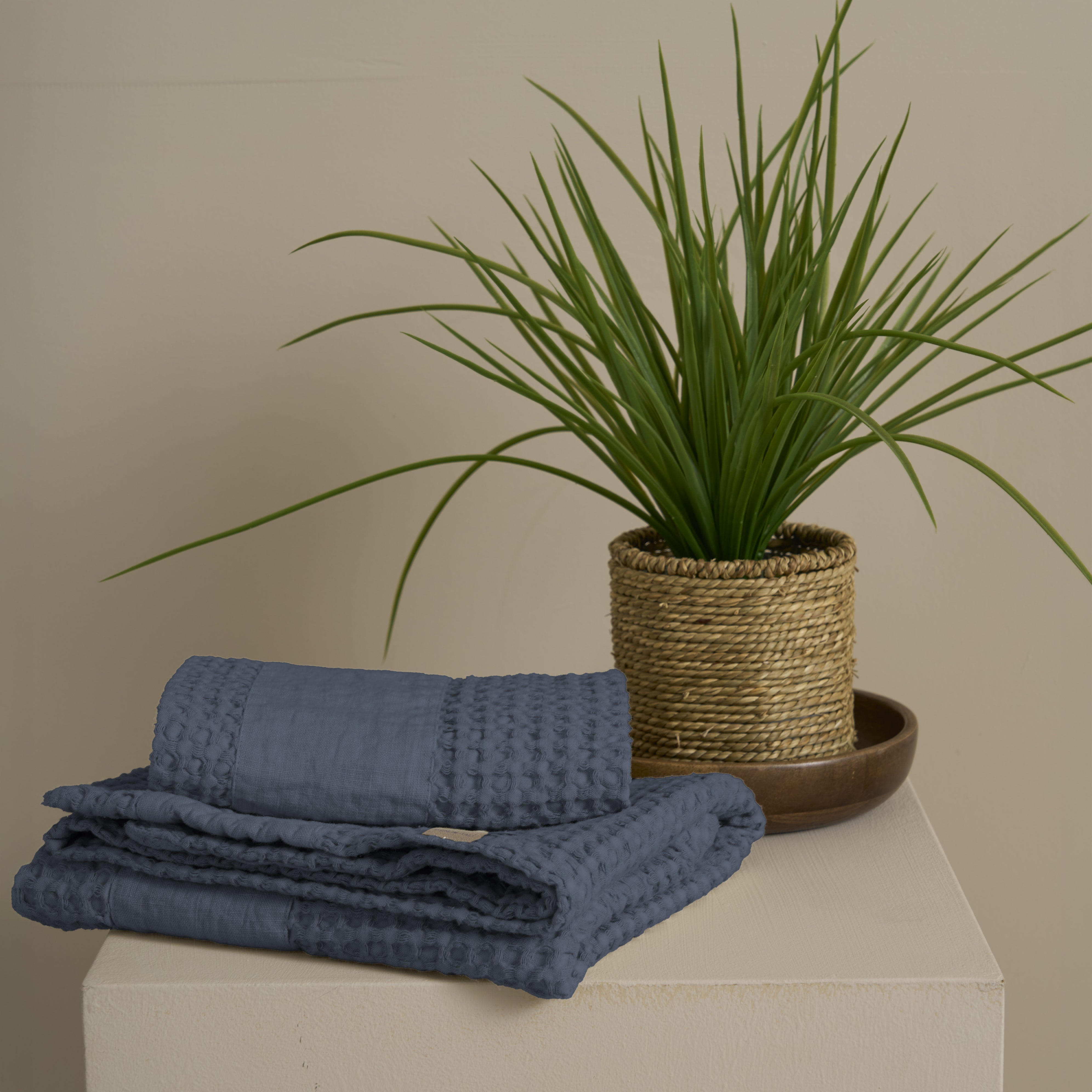 Coppia Nido d'Ape Stonewashed con Bordo in Lino - Jaspy