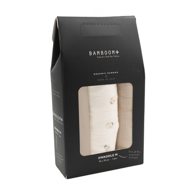 Le mussole, di cotone e/o bambù, sono la scelta giusta per rispettare la pelle delicata di un neonato: estremamente morbide, assorbenti, traspiranti e resistenti. Contenute nella speciale confezione, le tre mussole presentano tonalità tenui e neutre.