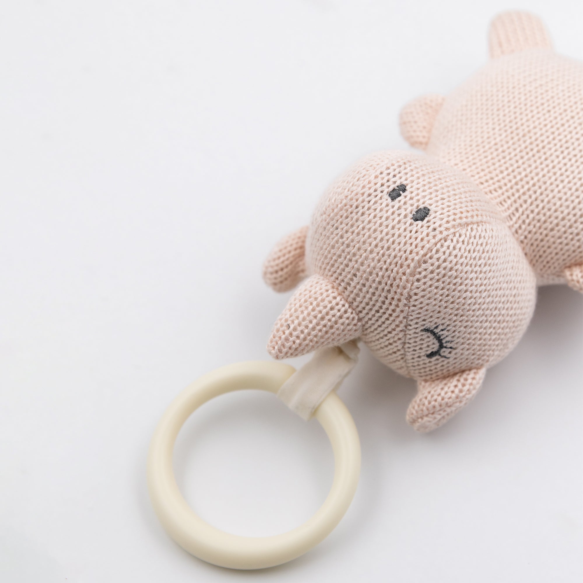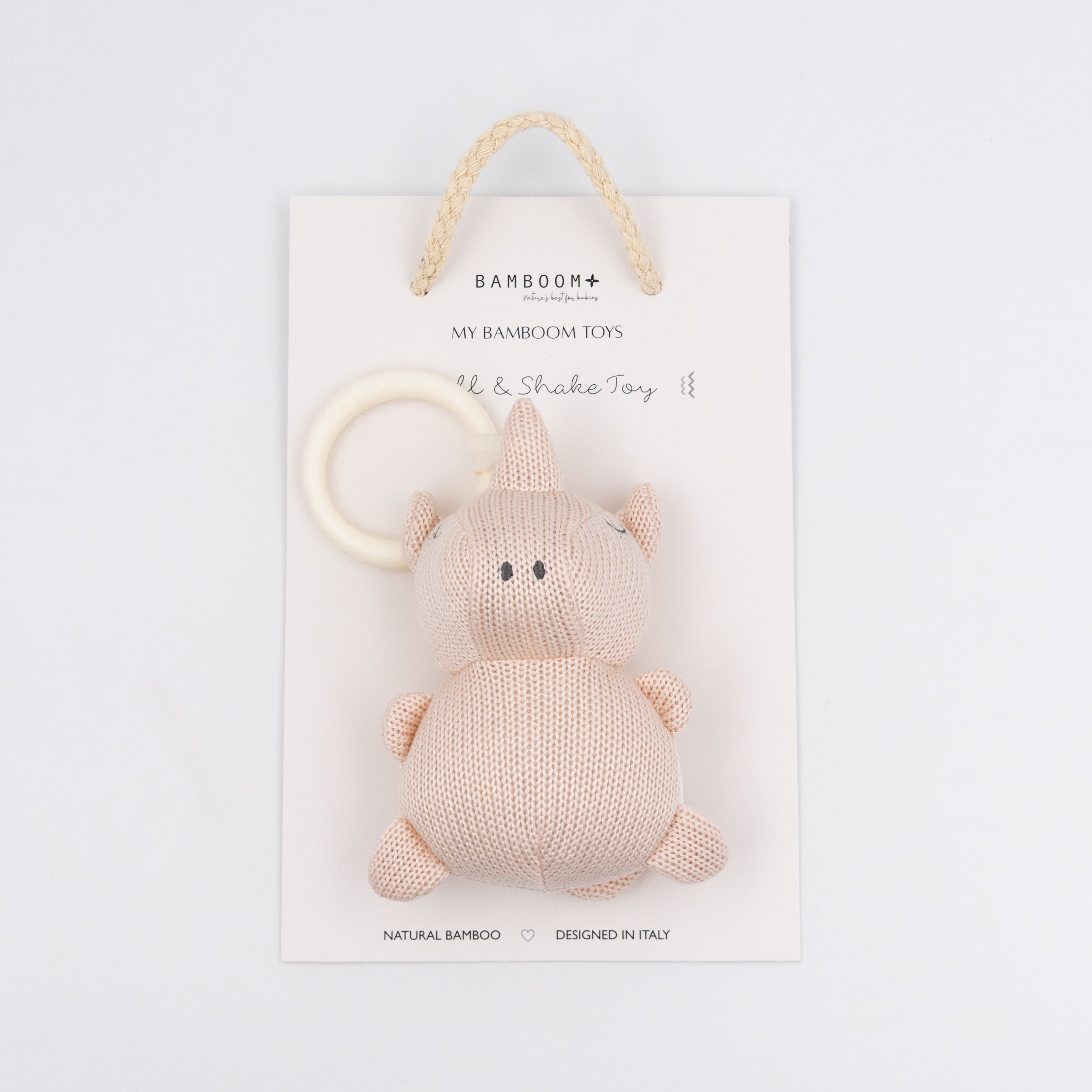 Giocattolo Sensoriale in Maglia di Bambù a Forma di Rinoceronte - Pull & Shake