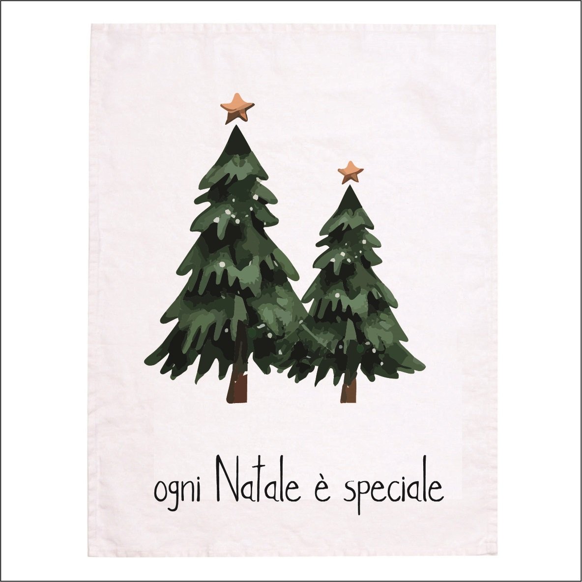 Il Canovaccio “Ogni Natale è speciale” di Simple Day è realizzato in puro lino e decorato da una dolce stampa acquerellata con due abeti natalizi sormontati da stelle dorate, accompagnati da una frase che celebra la magia delle feste. Il particolare trattamento riservato al tessuto rende il canovaccio morbidissimo, donando inoltre un piacevolissimo look vissuto e "stropicciato". Grazie all'effetto Stonewashed inoltre, il canovaccio non necessita di essere stirato.