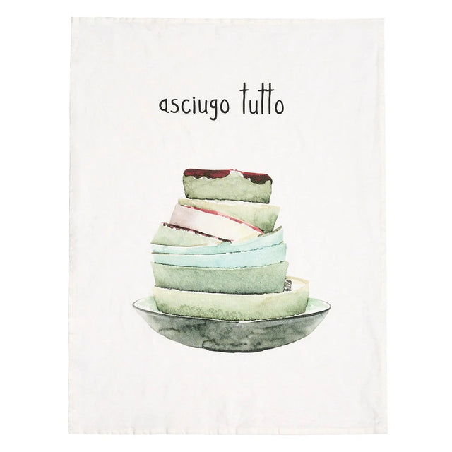 Il Canovaccio Asciugo Tutto è realizzato in puro lino stonewashed. Dal tocco molto leggero, il canovaccio è perfetto per l'asciugatura dei piatti e per le superfici della cucina grazie al suo materiale. Caratterizzato da una simpatica stampa che presenta il disegno di una casetta con una scritta "Asciugo Tutto".