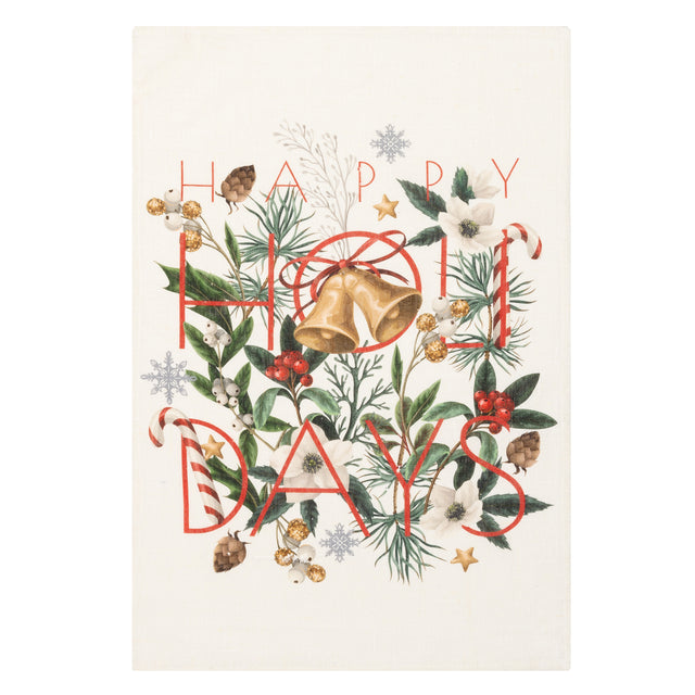 Il Canovaccio Holidays è realizzato in puro lino . Dal tocco molto leggero, il canovaccio è perfetto per l'asciugatura dei piatti e per asciugare le superfici della cucina, grazie al suo materiale. Caratterizzato da una stampa natalizia che intreccia a rametti di vischio e agrifoglio la scritta "Holidays".