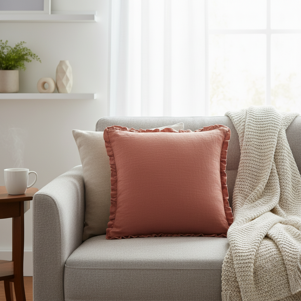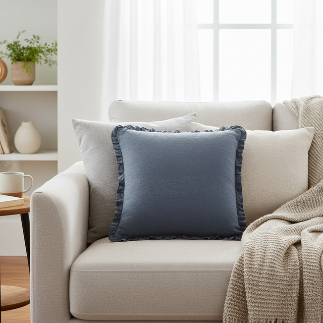 Cuscino in Lino Stonewashed con Balza Arricciata - River