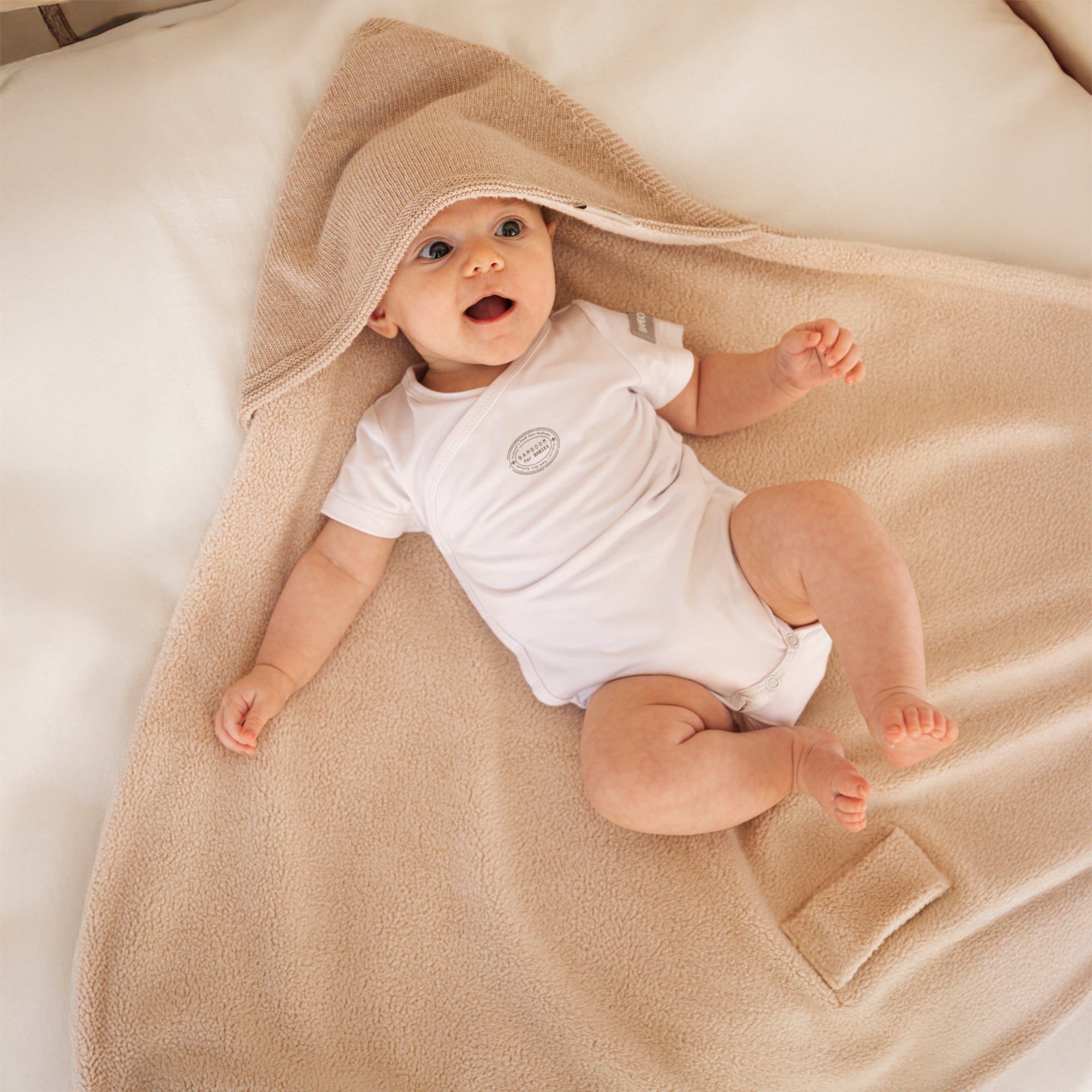 Il lato interno in tessuto teddy ultra-morbido avvolge il neonato in una piacevole sensazione di calore e protezione, mentre la parte esterna, finemente rifinita, dona un tocco raffinato e contemporaneo. Perfetta per l’ovetto o per i momenti di relax a casa, Comfy è una copertina versatile e delicata sulla pelle, ideale anche come preziosa idea regalo.