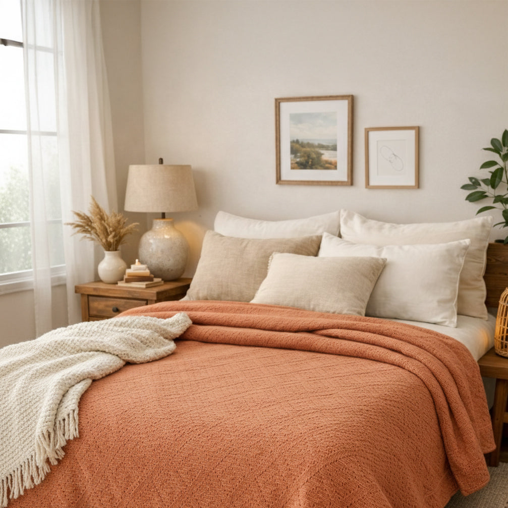 Il Copriletto Cochin è realizzato in 100% cotone dalla mano fresca e piacevole, ideale per vestire il letto con un’eleganza semplice e contemporanea. La sua trama materica a rilievo regala profondità e movimento alla tinta unita, creando un effetto raffinato ma naturale. Leggero e pratico, è perfetto per la stagione primavera/estate, con una consistenza corposa (325 gr/m²) che cade bene e valorizza l’ambiente.