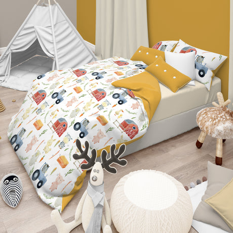 Parure Copripiumino per Lettino in Puro Cotone con Fantasia - Train