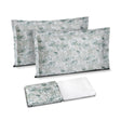 Il Completo Copripiumino Carezza, realizzato in morbido Raso di Cotone 300 TC (120 fili), è impreziosito da una fantasia floreale all over su federe e sacco copripiumino, mentre il lenzuolo da sotto con angoli è bianco tinta unita. Le federe, inoltre, sono arricchite da 4 volanti ai lati.