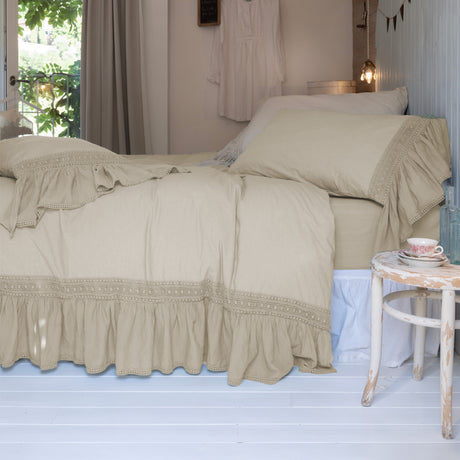 Completo Copripiumino in Cotone StoneWash con Balza in Lino - Sierra