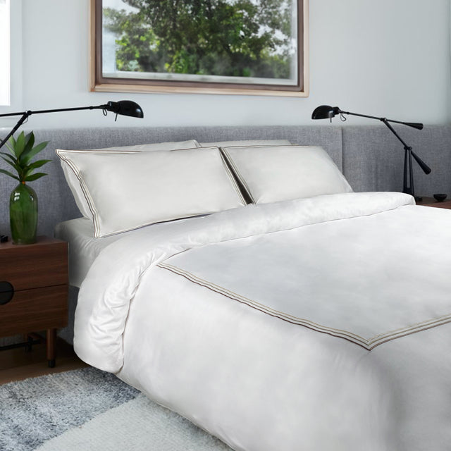 Completo Copripiumino in Raso di Cotone con Bacchette Ricamate - Parigi