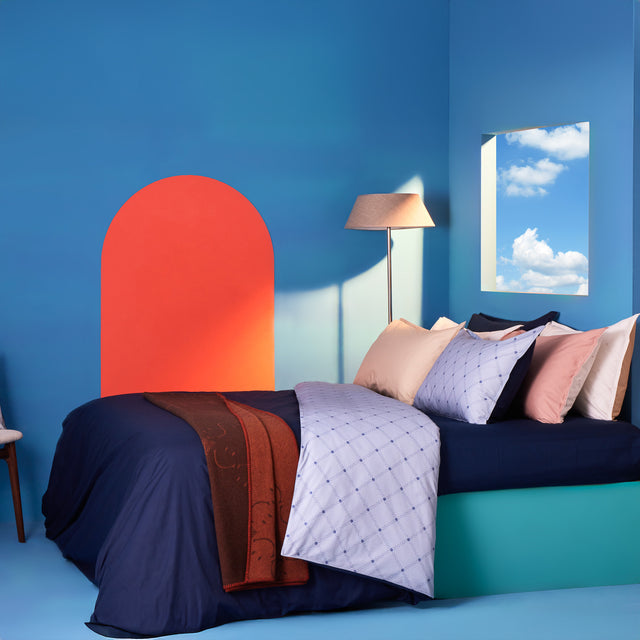La Parure Copripiumino Pattern è realizzata in pregiato Percalle di Puro Cotone 200TC, che garantisce una tessitura particolarmente fitta e resistente. Il design innovativo presenta una doppia personalità: un lato caratterizzato da disegni geometrici e l'altro in raffinata tinta unita, offrendo infinite possibilità di styling per la camera da letto.