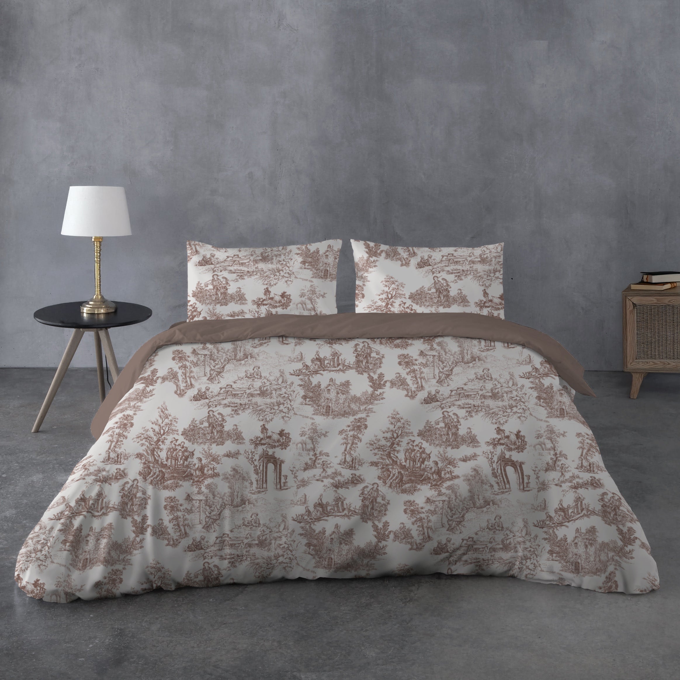 Parure Copripiumino in Percalle di Cotone con Stampa - Toile de Jouy