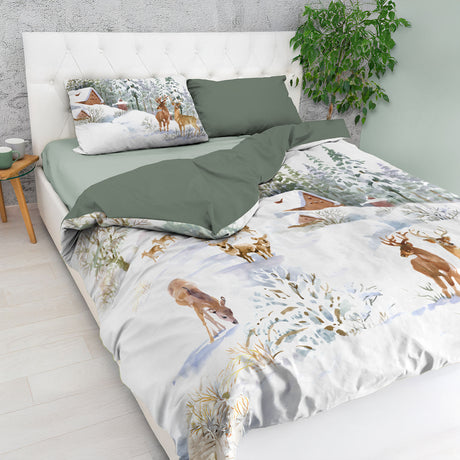 Parure Copripiumino in Puro Cotone Satinato Ricamato - Deer