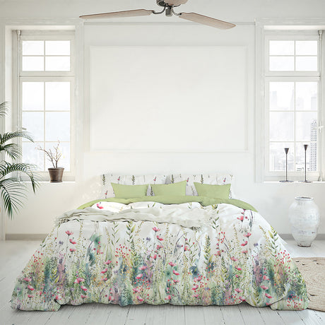 Parure Copripiumino in Percalle di Cotone con Stampa Floreale - Meadow