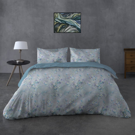 Completo Copripiumino in Raso di Puro Cotone Fantasia Floreale - Glicine