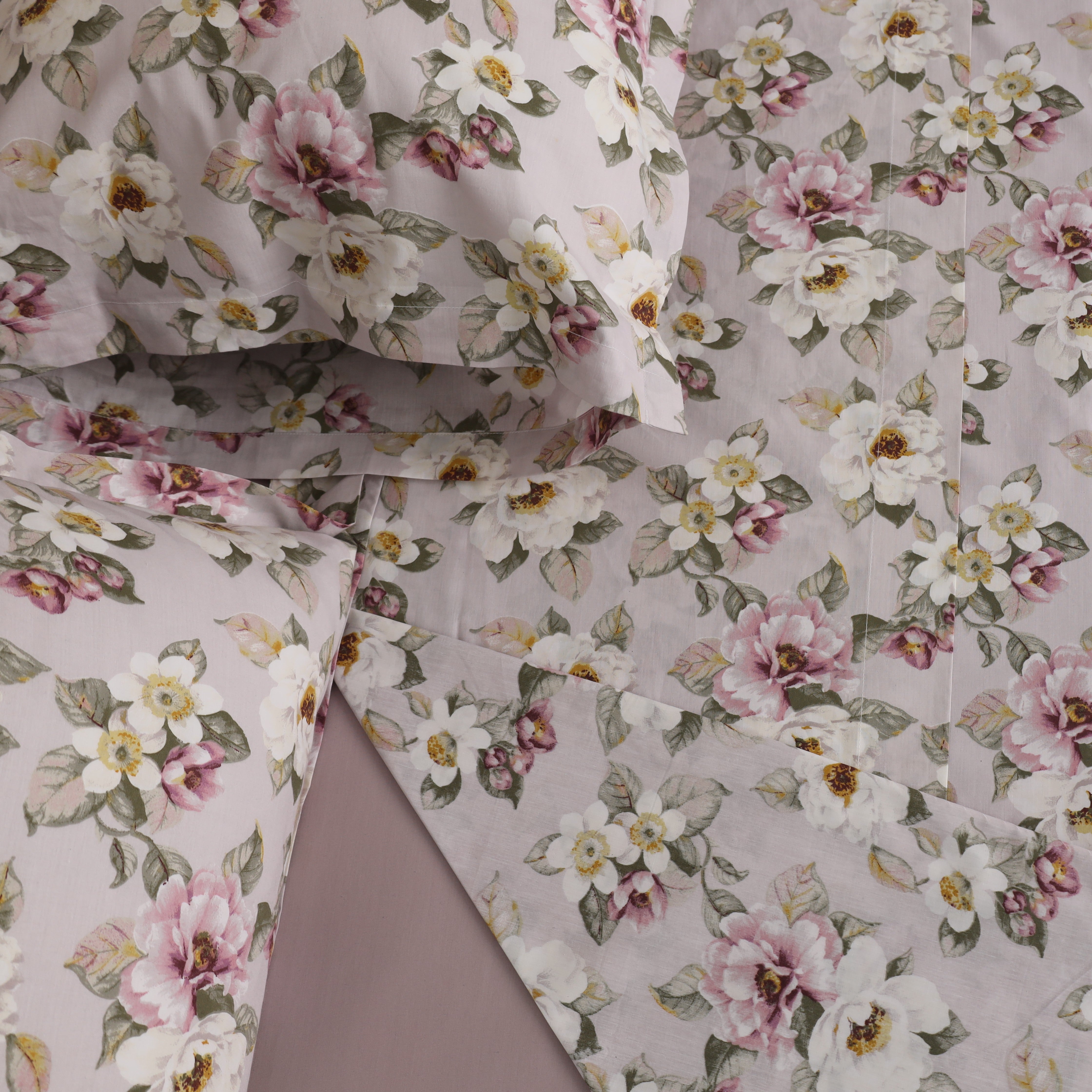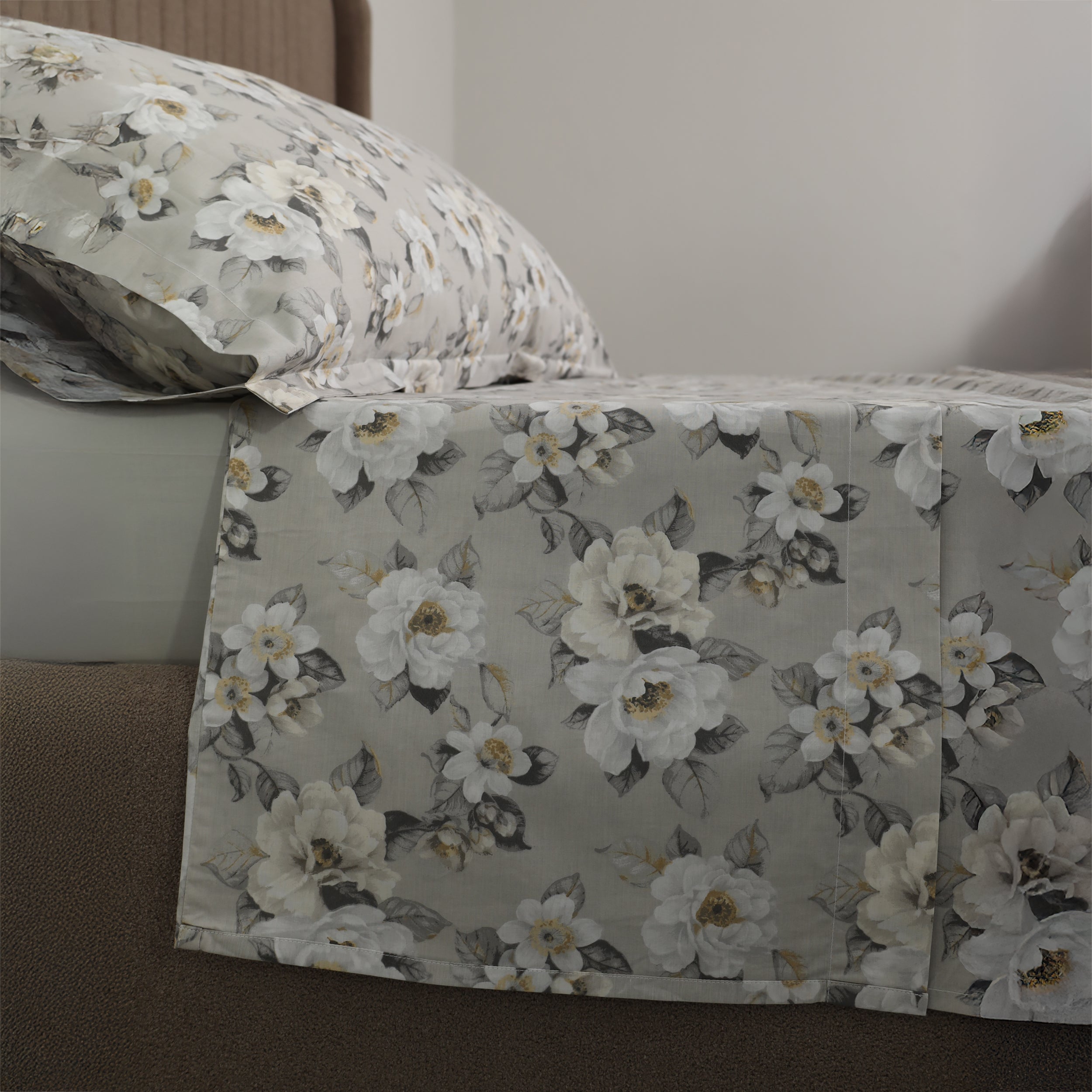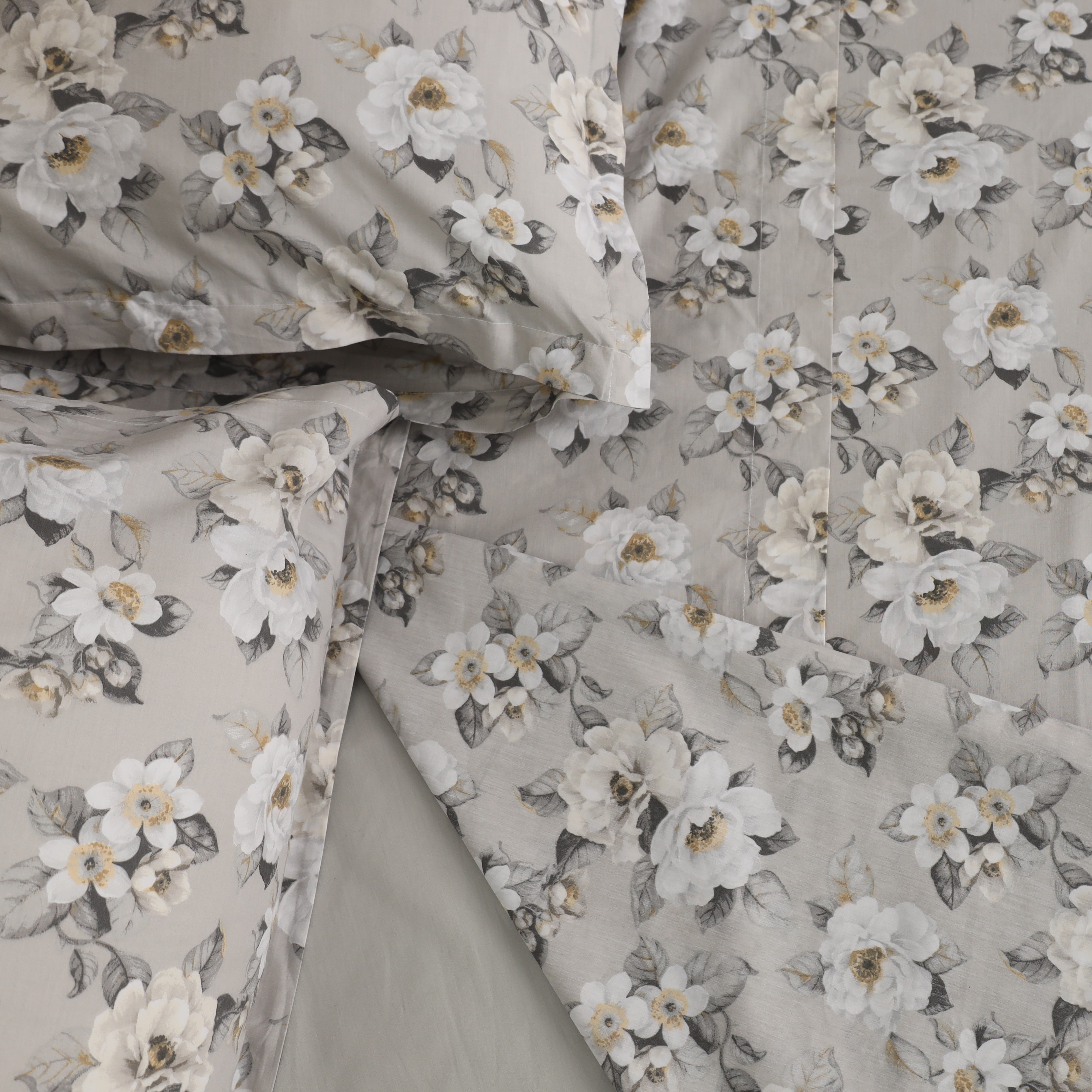 Completo Lenzuola Copriletto in Percalle di Cotone Egiziano con Stampa Floreale - Fiaba Bloom