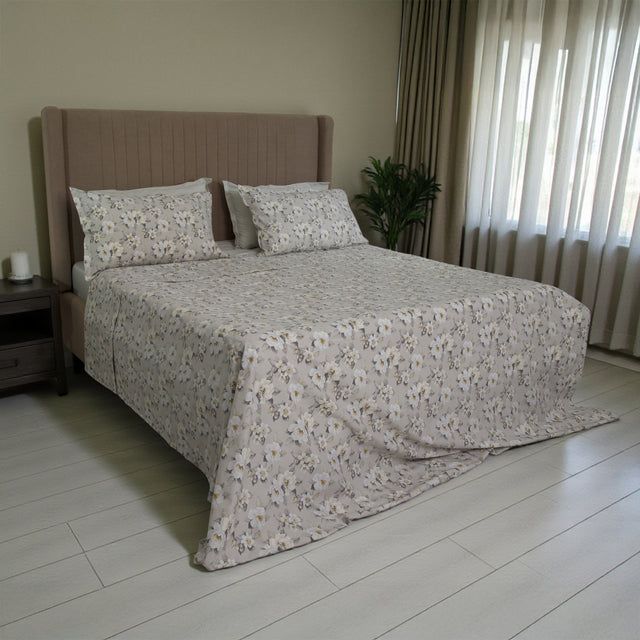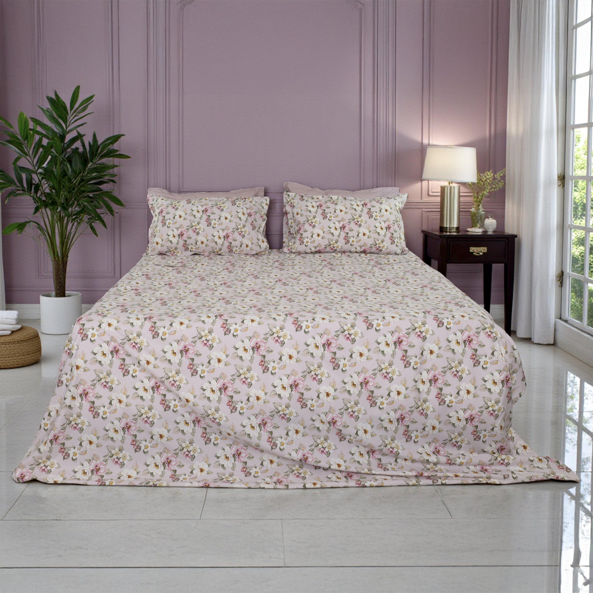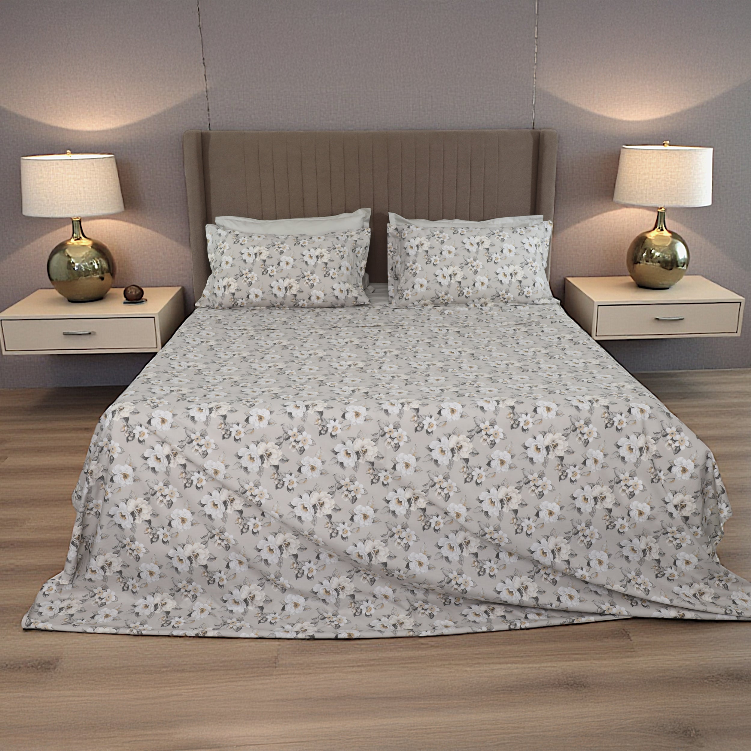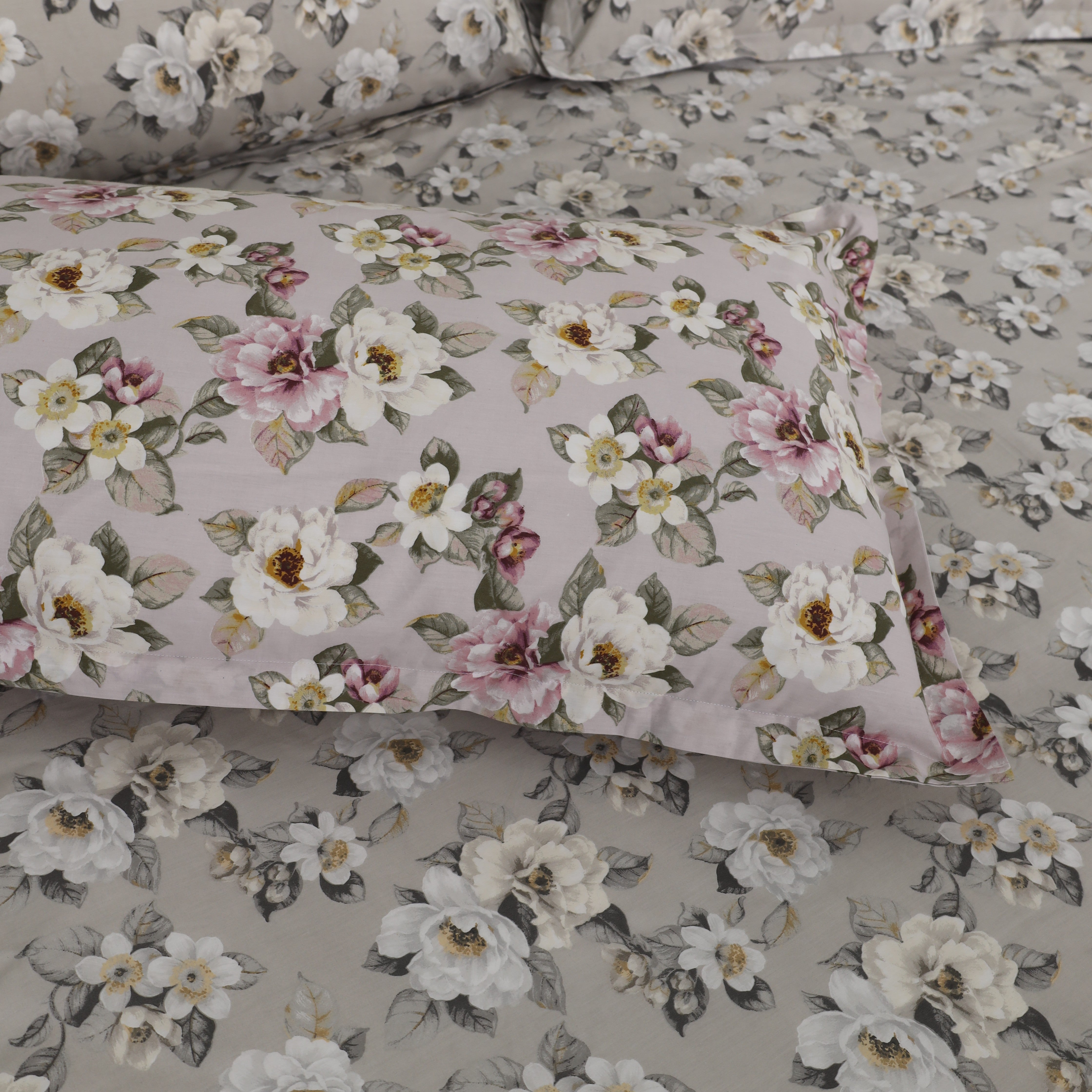 Completo Lenzuola Copriletto in Percalle di Cotone Egiziano con Stampa Floreale - Fiaba Bloom