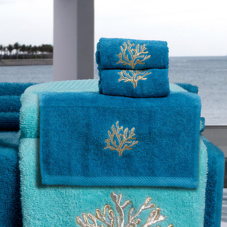 Telo Mare in Spugna di Cotone con Ricamo - Coralli