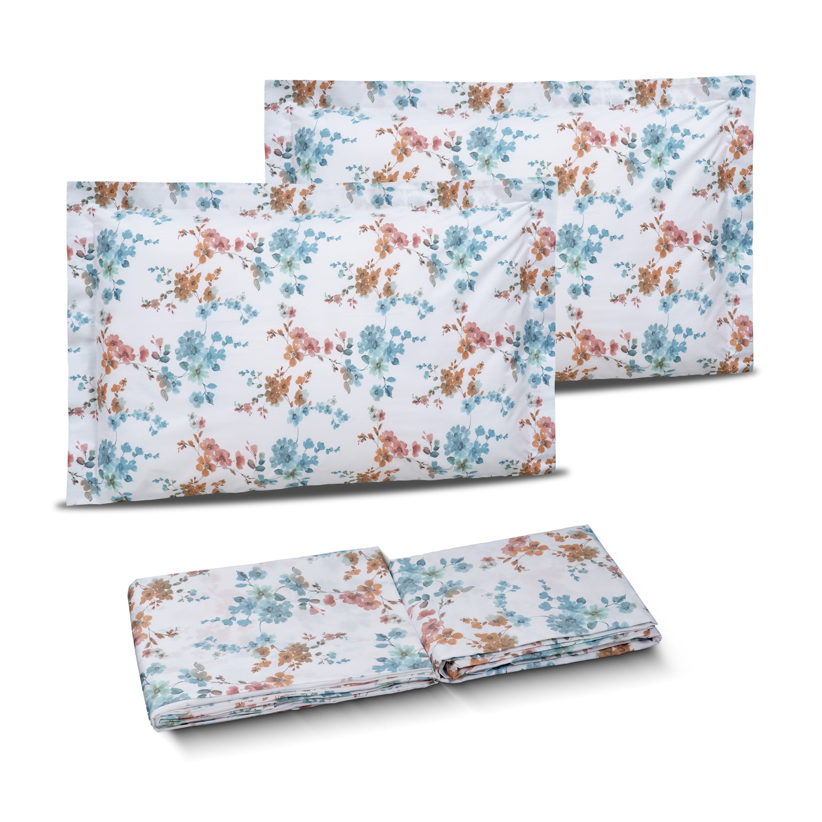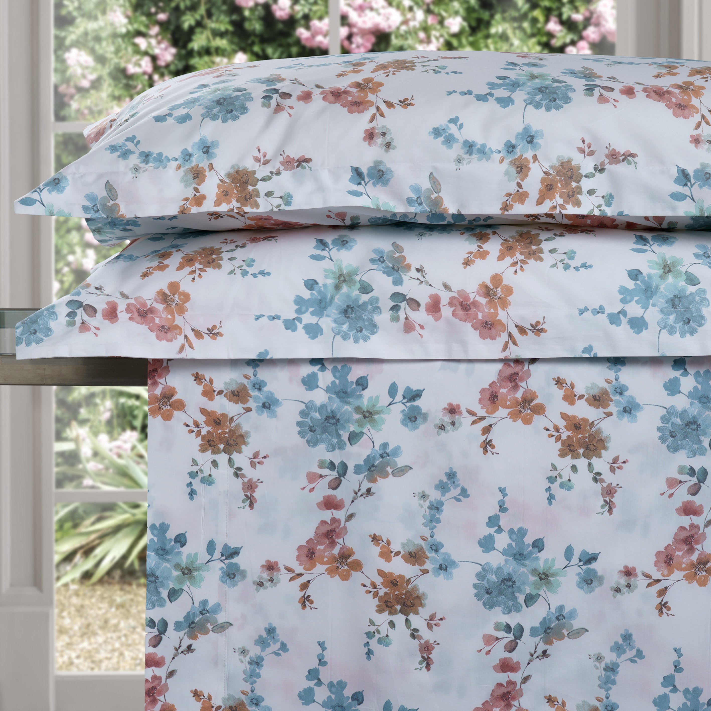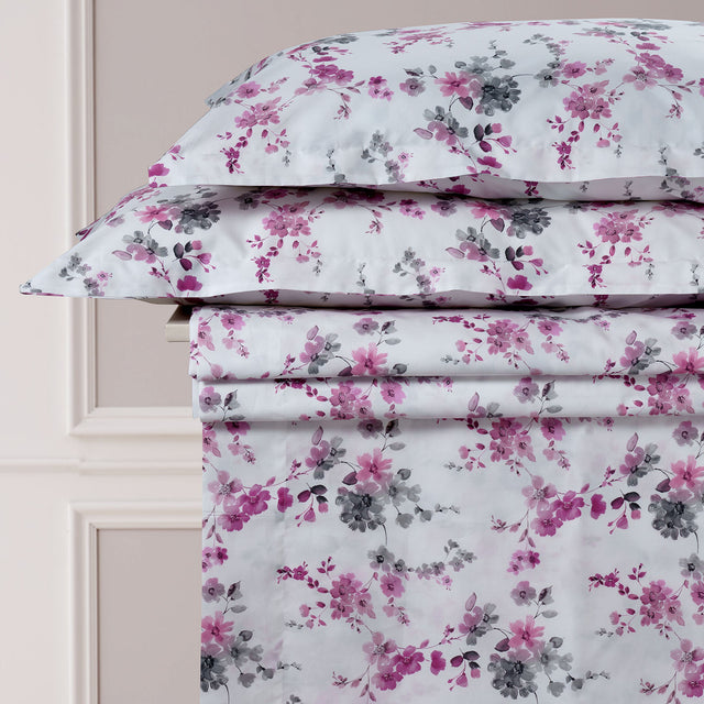 Completo Lenzuola Copriletto in Percalle di Cotone Fantasia Floreale - Skye