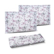 Il Completo Lenzuola Copriletto Skye, realizzato in Percalle di Cotone, è caratterizzato da una stampa floreale all over che decora federe e lenzuolo da sopra, mentre il lenzuolo da sotto è in tinta unita, per un risultato armonioso e raffinato.