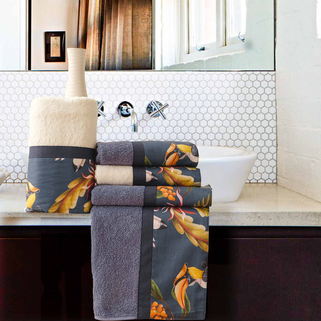 Il Set di 2 Coppie di Asciugamani Paraguay è realizzato in morbida spugna di puro cotone 430 gr/mq. Assorbente e molto soffice al tocco, il ser comprende 2 asciugamani da viso e due da ospite la coppia è caratterizzata da una balza in percalle di cotone che presenta una stampa tropicale. La spugna è in tinta unita e crea un piacevole contrasto con la balza, donando alla coppia un tocco unico.