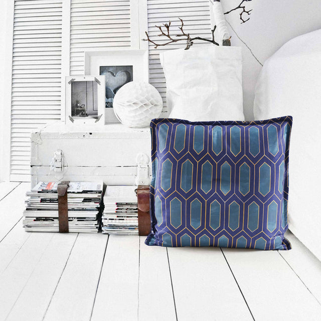 Cuscino Arredo in Percalle di Cotone Stampa Geometrica - Royal