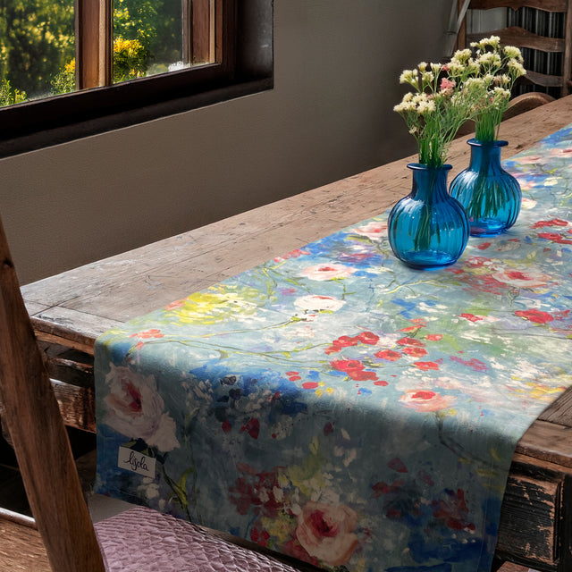 Runner in Puro Cotone Fantasia Floreale - Acquerello