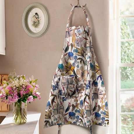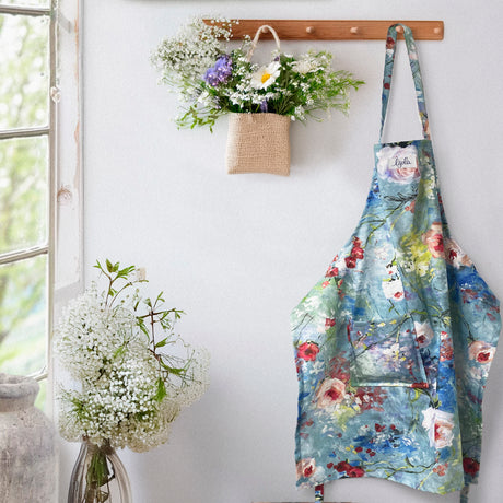 Grembiule con Pettorina in Puro Cotone Fantasia Floreale - Acquerello
