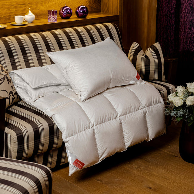 Il Piumino d'Oca Opulence creato da Hefel è il risultato dell'unione tra il tocco serico del Tencel, il lusso del cashmere e il leggiadro calore del piumino d'oca.