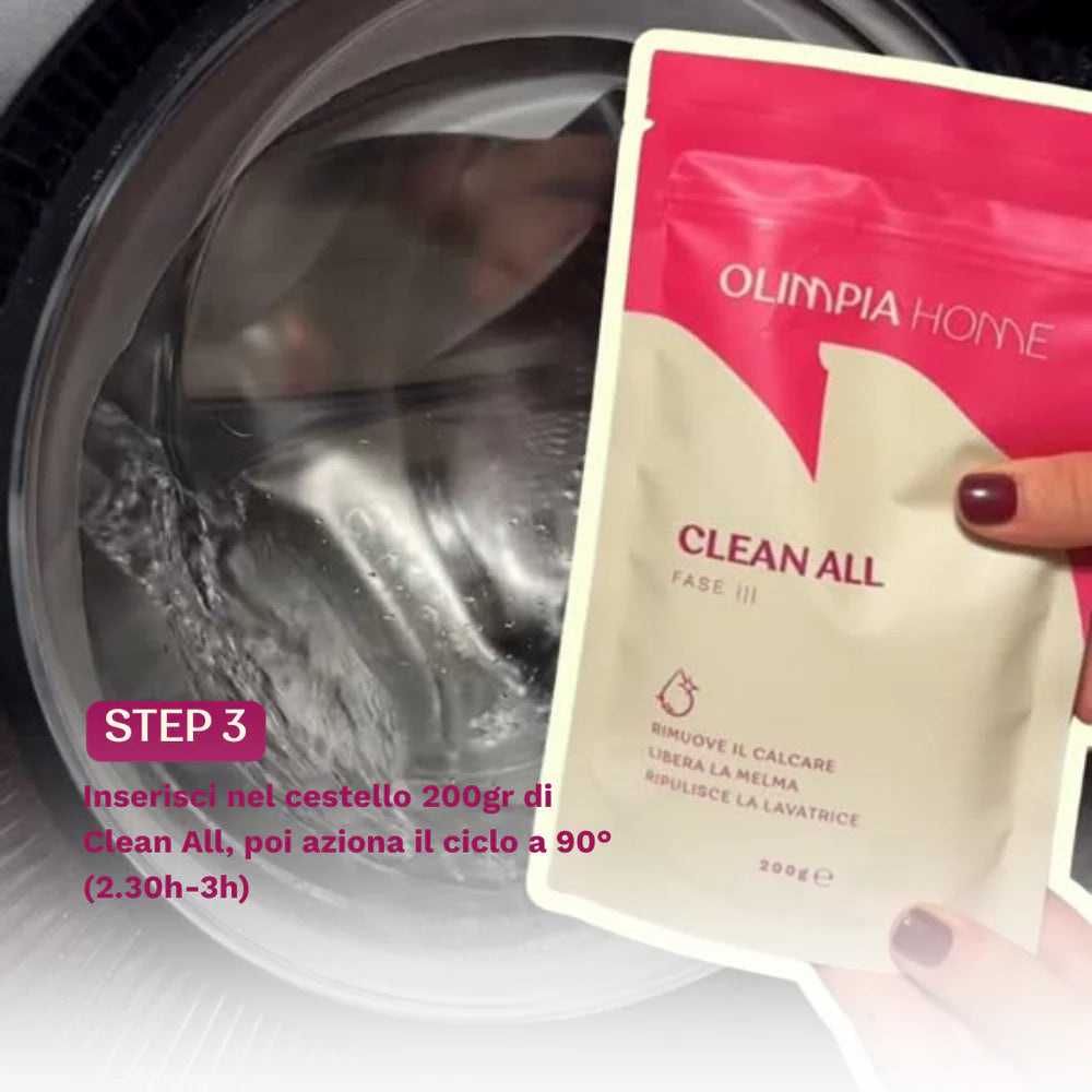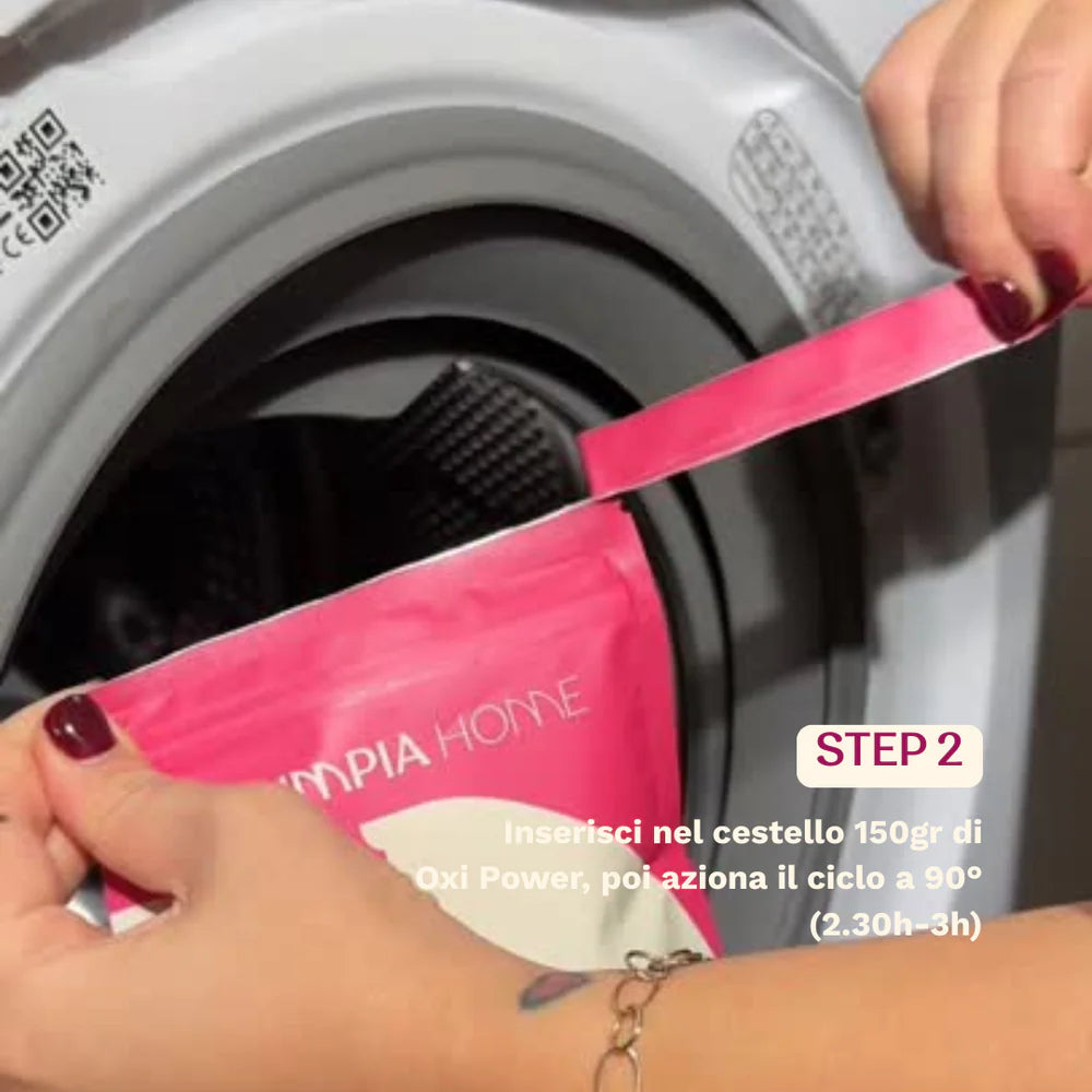 Il Kit MelmaNoMore è la soluzione completa di Olimpia Home per eliminare definitivamente la melma dalla lavatrice con un ciclo di pulizia profonda. Questo kit comprende: