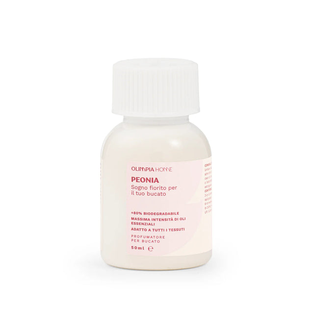 Il Profumatore Peonia è un sogno fiorito di Olimpia Home che trasforma ogni lavaggio in un viaggio olfattivo nel cuore di un giardino fiorito, dove la peonia regna sovrana in un bouquet ricchissimo. Con soli 7 ml per lavaggio (un tappo), questa fragranza elegante e floreale avvolge i tuoi capi nella delicatezza della peonia combinata con sfumature fruttate che rivitalizzano i sensi e creano la sensazione di fiori appena sbocciati tutto l'anno.