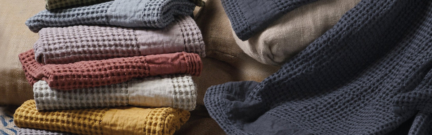 Coppia Nido d'Ape Stonewashed con Bordo in Lino - Jaspy