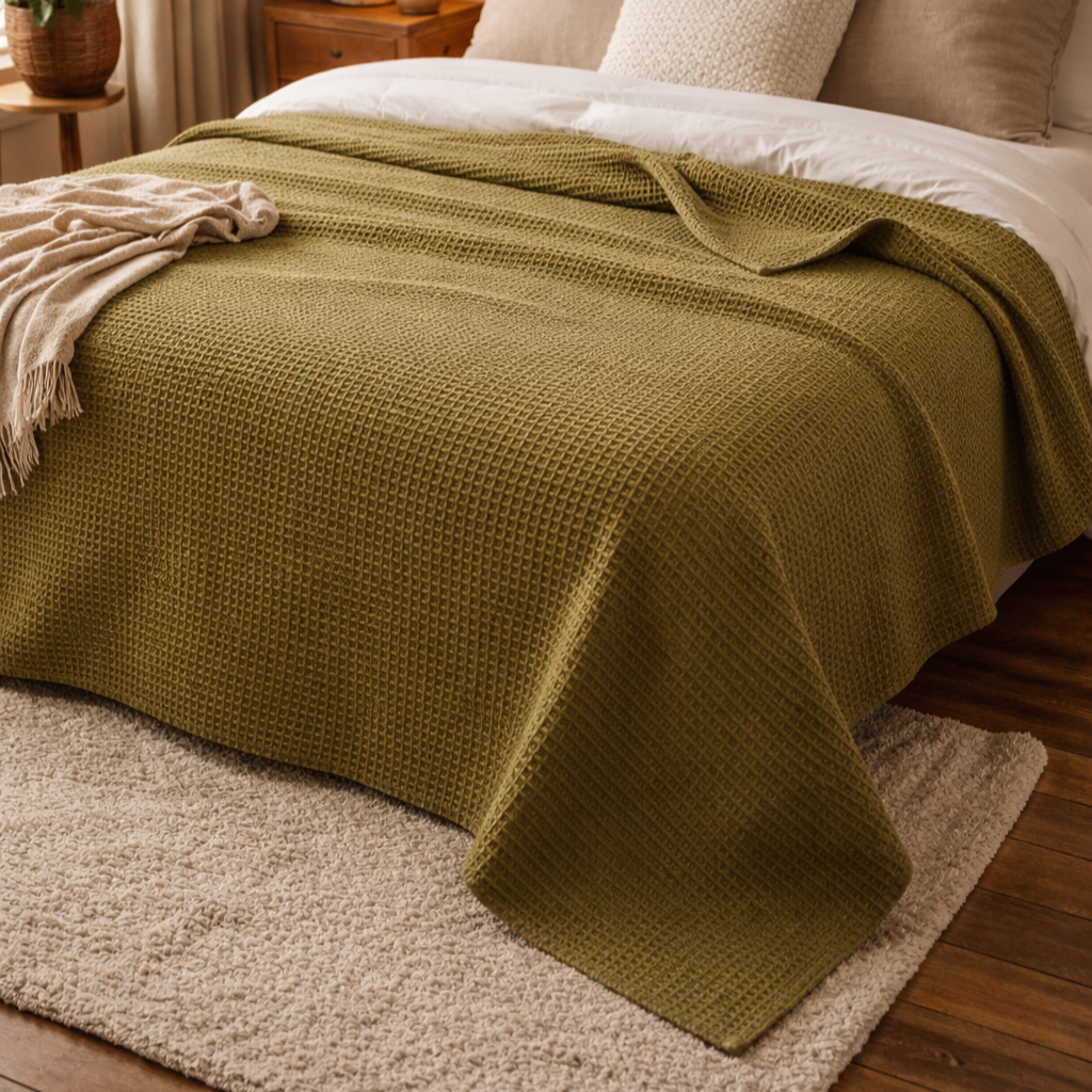 Copriletto a Nido D'Ape StoneWashed in Cotone Riciclato Tinta Unita - Maia Recycle