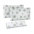 Il Completo Lenzuola Copriletto Imperia, realizzato in Percalle di Cotone è caratterizzato da una stampa floreale all over che ricopre federe e lenzuolo da sopra, mentre il lenzuolo da sotto è tinta unita.