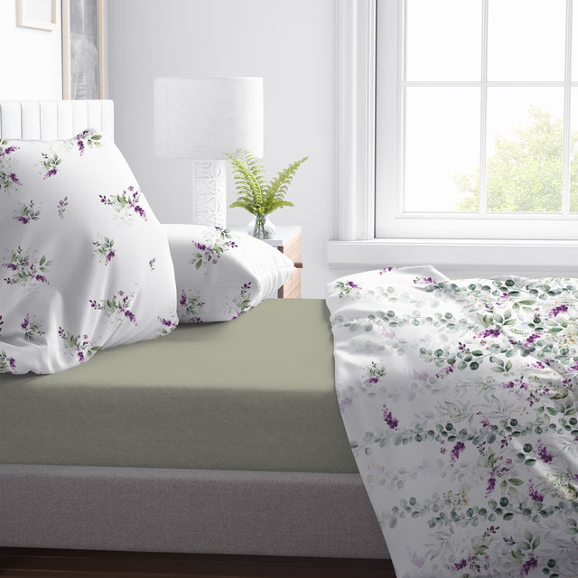Completo Lenzuola Copriletto in Percalle di Cotone con Stampa Floreale - Wisteria