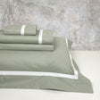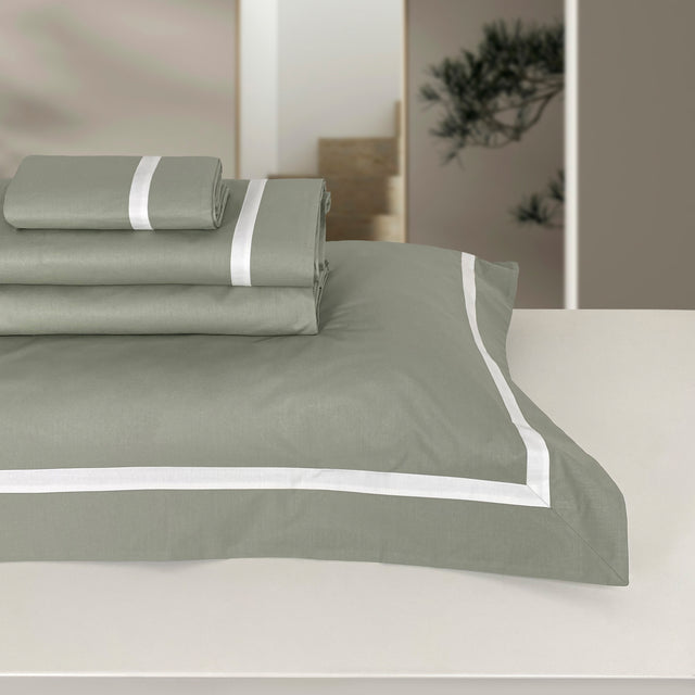 La collezione Corsica esalta la manifattura del percalle di cotone con tinte unite in tonalità moderne e delicate, che risaltano nel contrasto con il sottile bordino della balza.