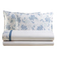Il Completo Lenzuola Maddalena, in Percalle di Cotone, è caratterizzato da una fantasia di coralli e da un bordino in nuance a contrasto che ritornano sulla balza del Lenzuolo Sopra e sulle Federe, mentre il Lenzuolo Sotto è completamente Tinta Unita.