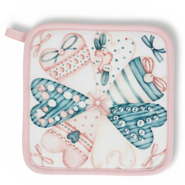 La Presina da Cucina Coccole, realizzata in 100% cotone riciclato, è un raffinato e utile strumento nelle vostre giornate invernali, mentre state preparando cenoni e pranzi per le festività. Il morbido bordino piping rosa rifinisce il prodotto, che vi garantirà eleganza e sicurezza, facendovi sentire veri che