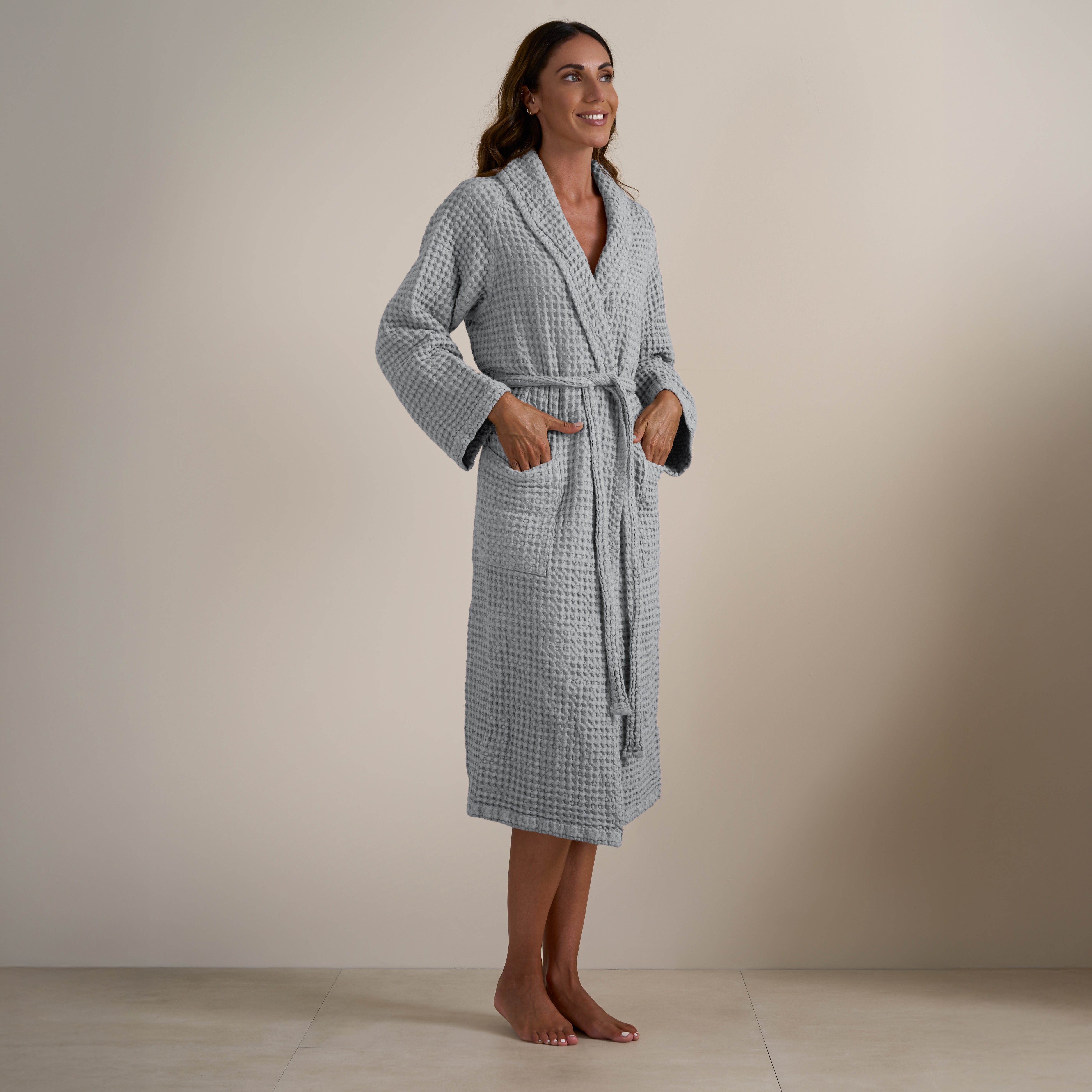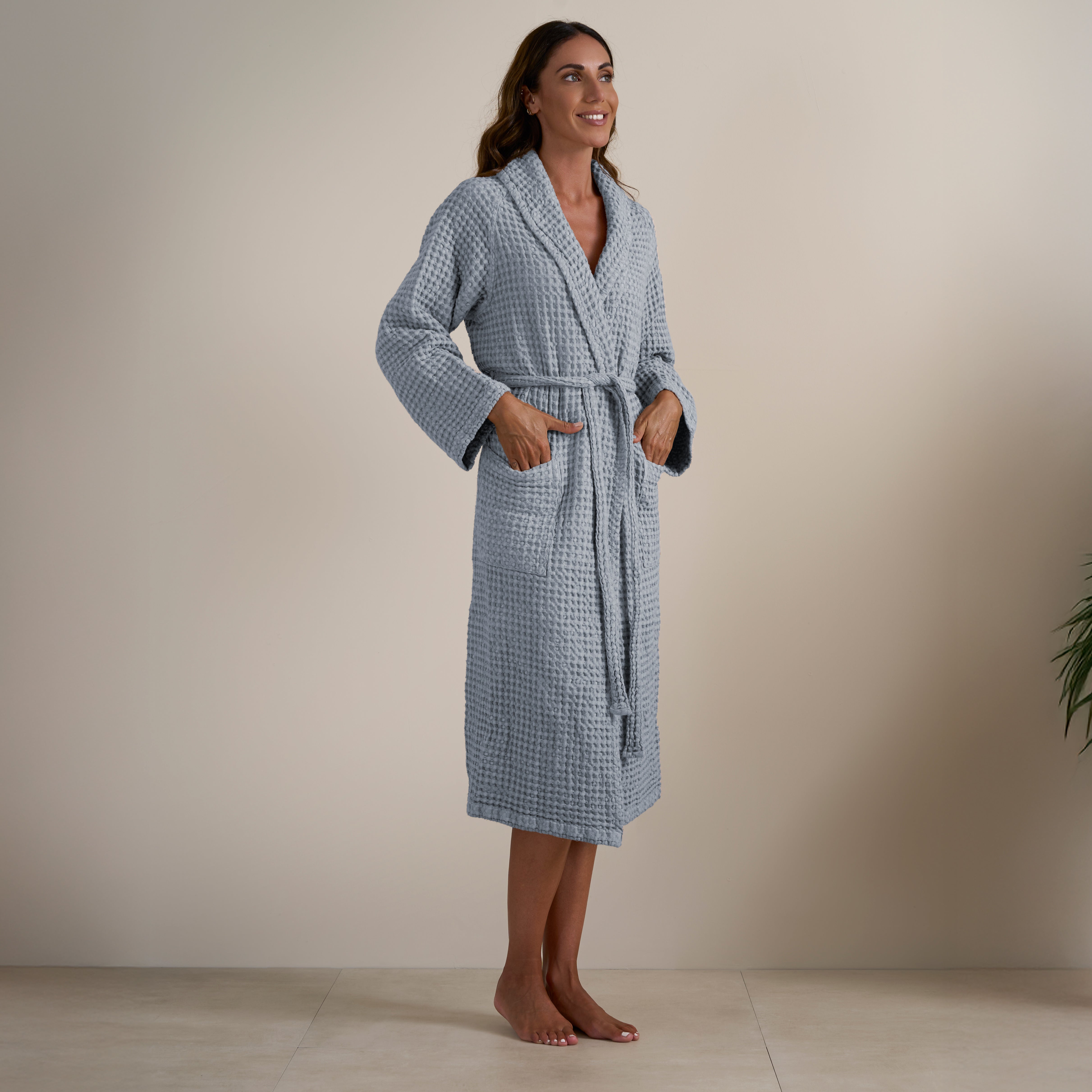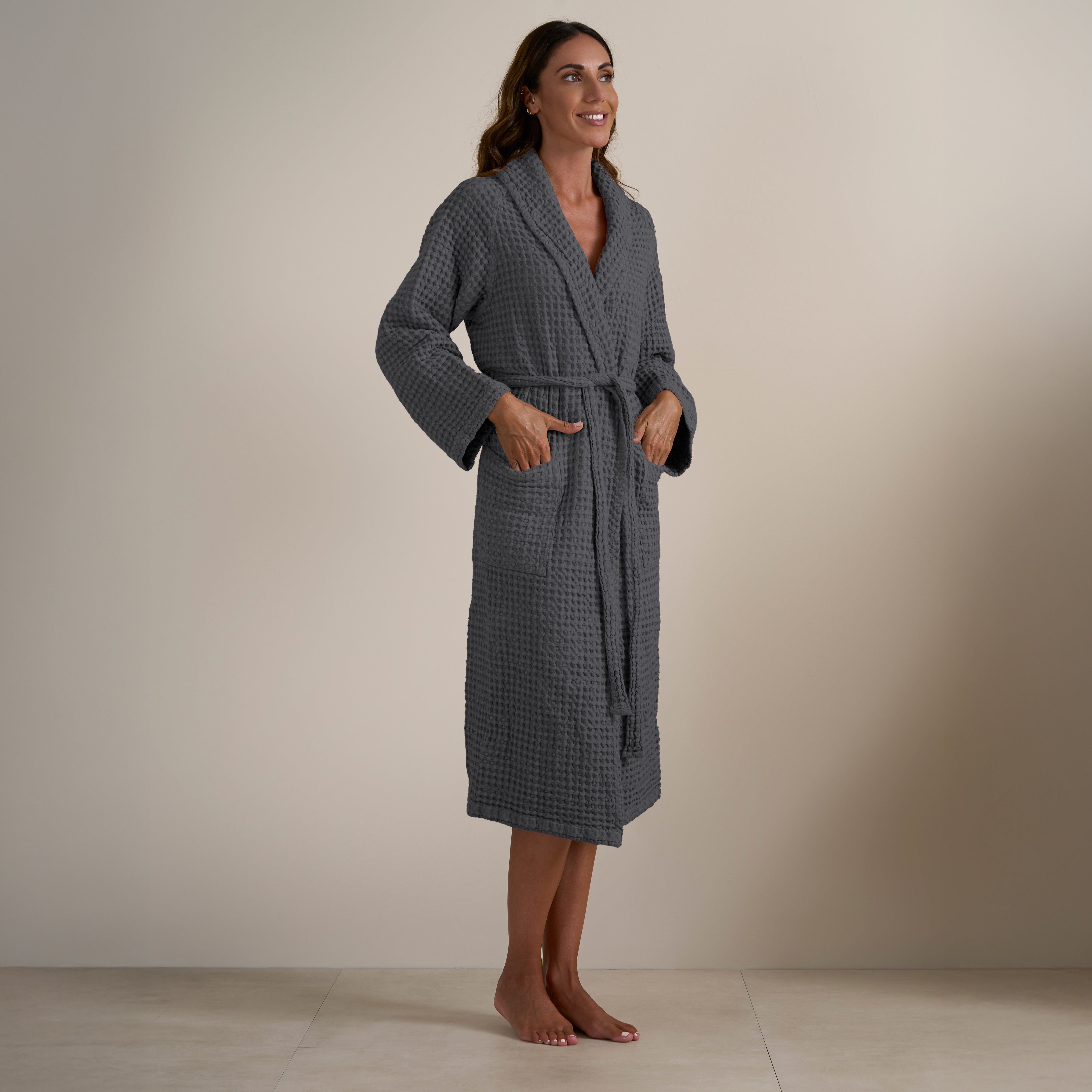 L'Accappatoio Jaspy in tinta unita è realizzato in Puro Cotone tinto in capo. Moderno ed essenziale, nella sua lavorazione a nido d'ape e nella ricca varietà di colori proposti, è l'ideale per gli amanti di uno stile semplice ma esteticamente efficace. Si lava facilmente e non necessita di essere stirato.