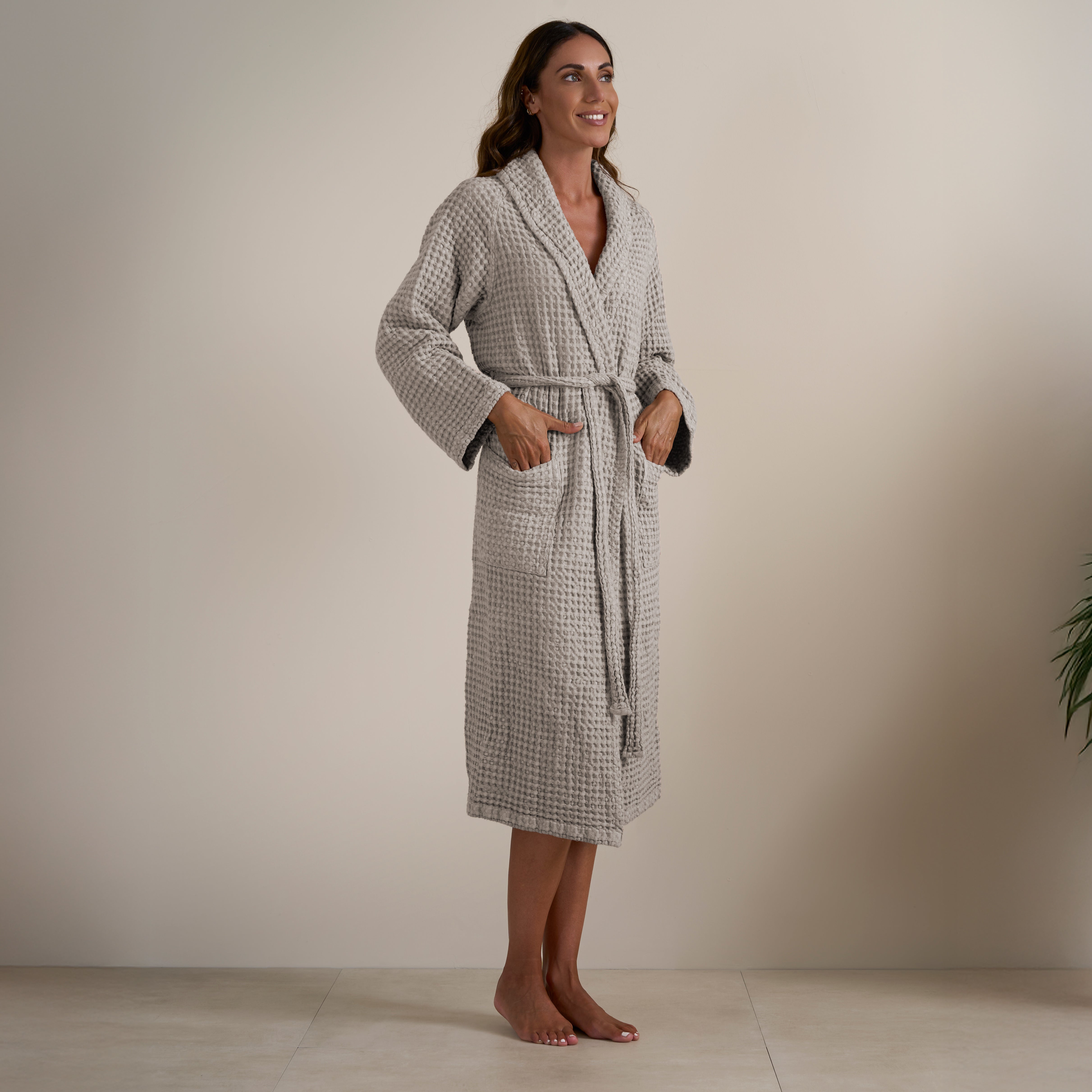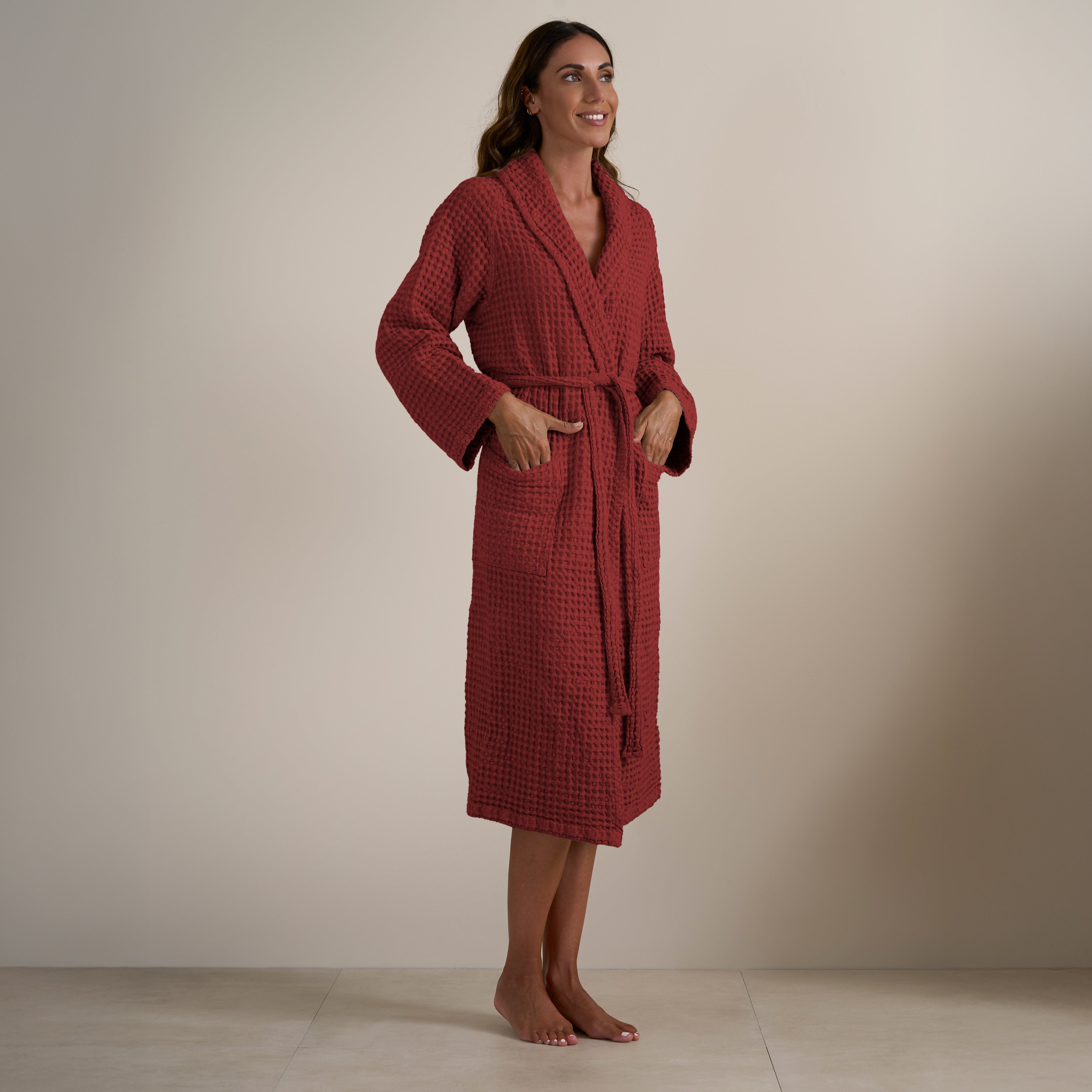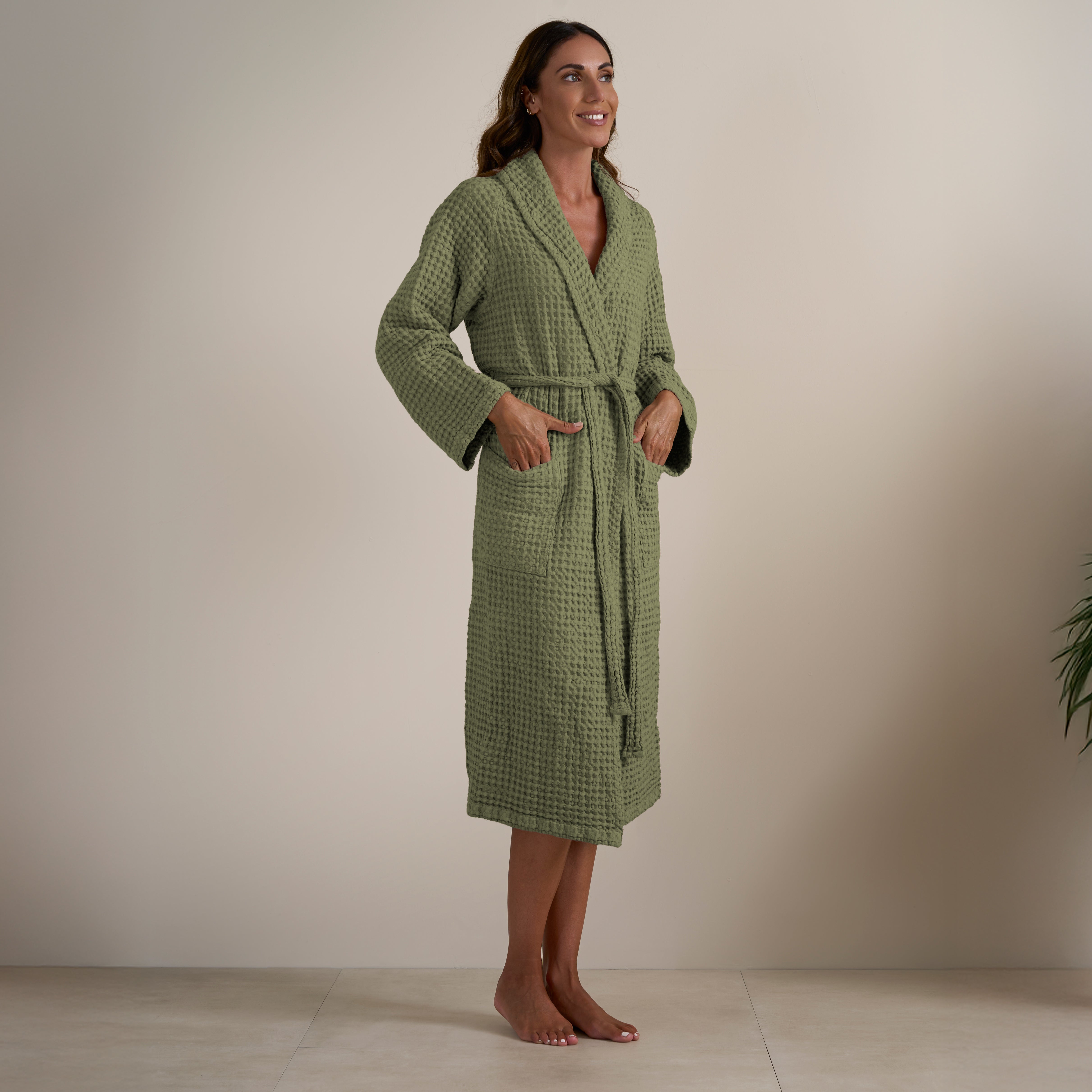 L'Accappatoio Jaspy in tinta unita è realizzato in Puro Cotone tinto in capo. Moderno ed essenziale, nella sua lavorazione a nido d'ape e nella ricca varietà di colori proposti, è l'ideale per gli amanti di uno stile semplice ma esteticamente efficace. Si lava facilmente e non necessita di essere stirato.