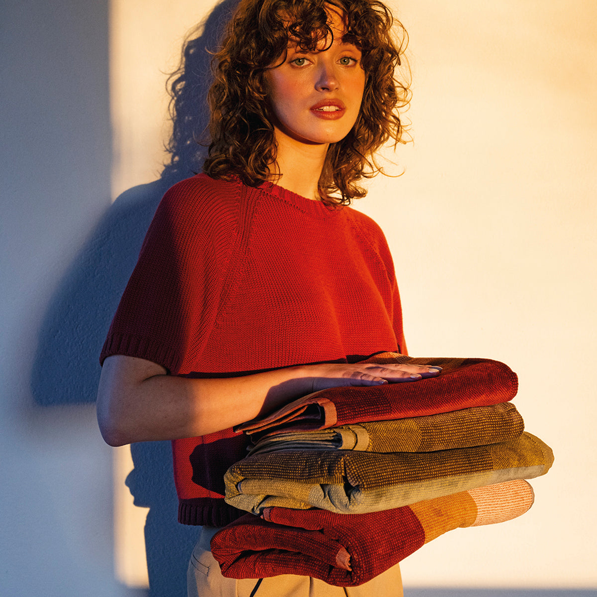 La Collezione Cromatismi gioca con geometrie eleganti e tonalità intense: dai rossi, aranci e terre calde ai verdi profondi con accenti bronzo. La superficie, compatta e morbida al tatto, è valorizzata dalla raffinata lavorazione jacquard/velour, che dona profondità e carattere alla composizione tessile.