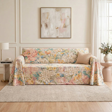 Telo Copritutto in Panama di Cotone Fantasia Floreale - Rosewood